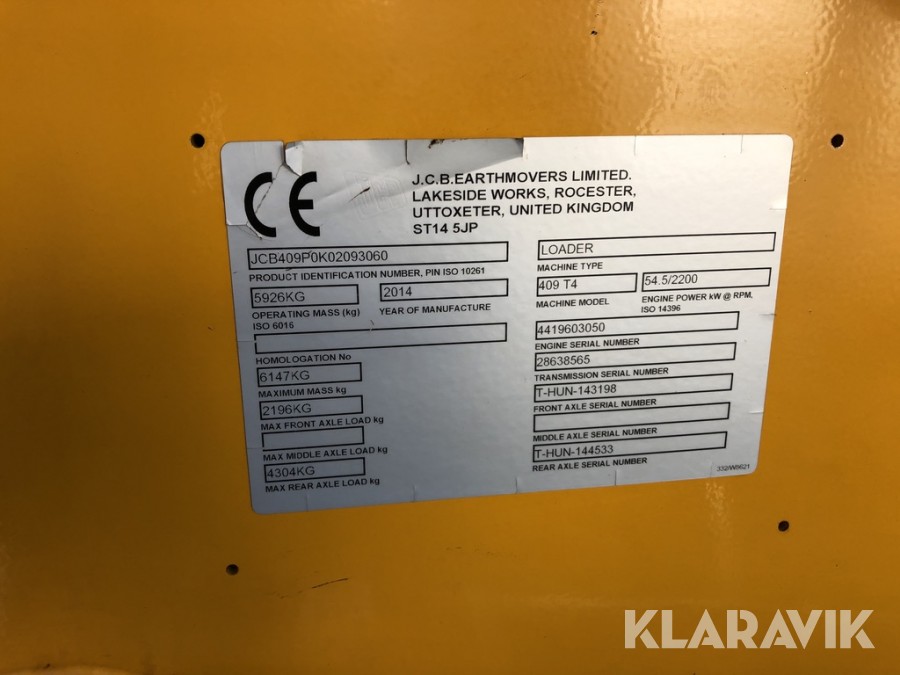 Lastmaskin JCB 409 6 ton T4 med redskap