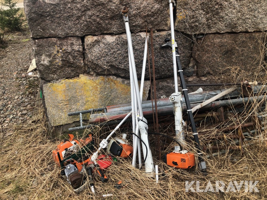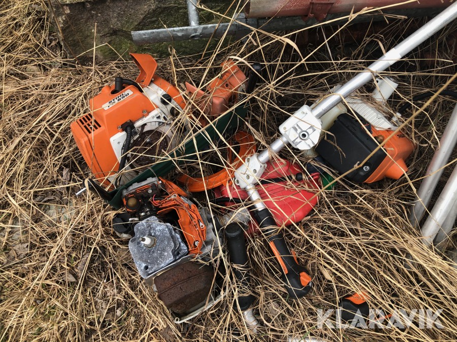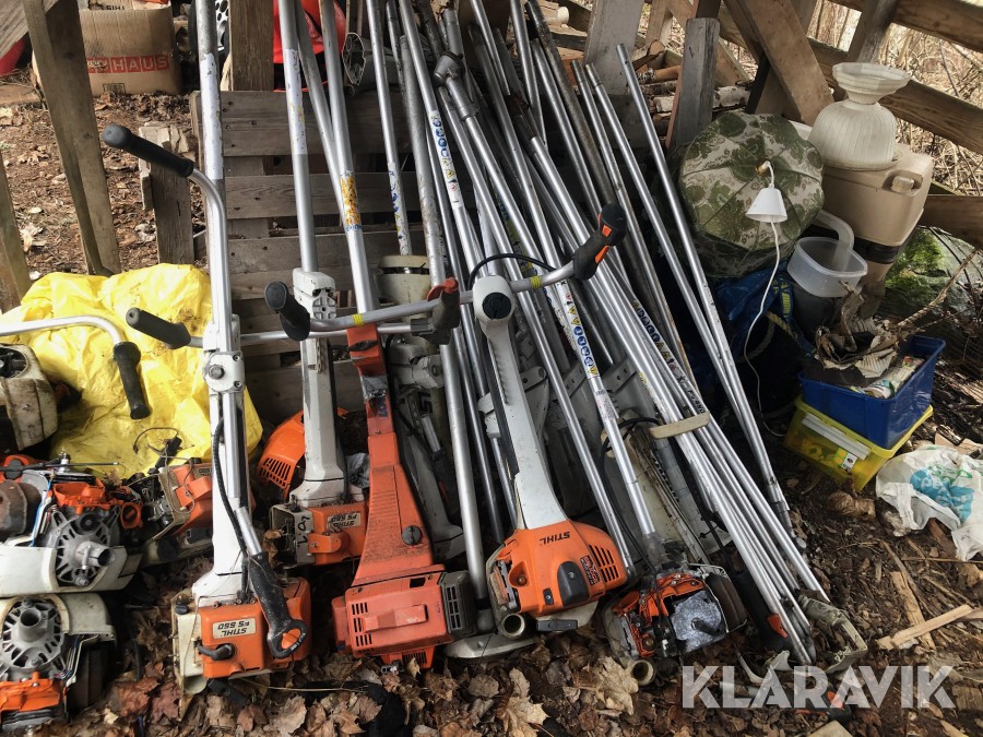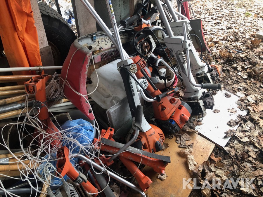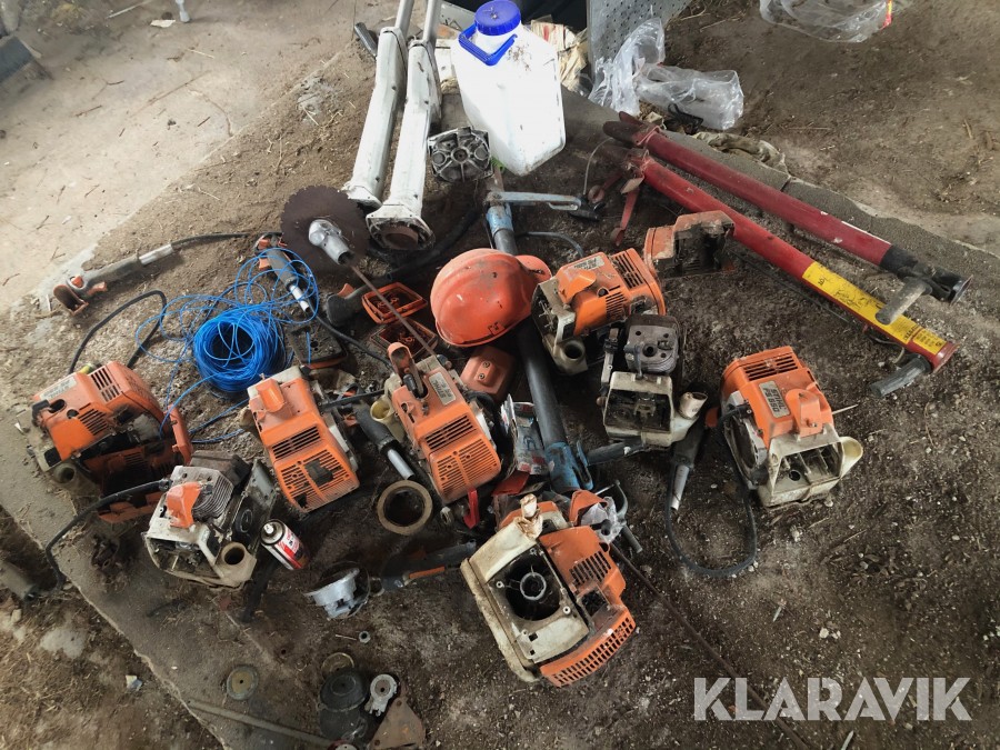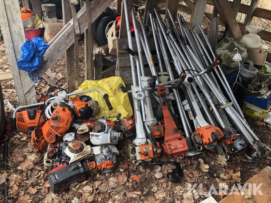 Ca. 30-tal röjsågar, Stihl och Husqvarna. De flesta utan klinghuvudet. Plus extra motorer m.m. m.m.