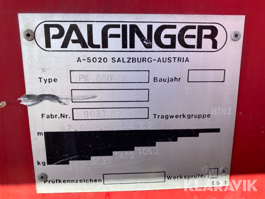 Kranflak med kran Palfinger PK 8000 A
