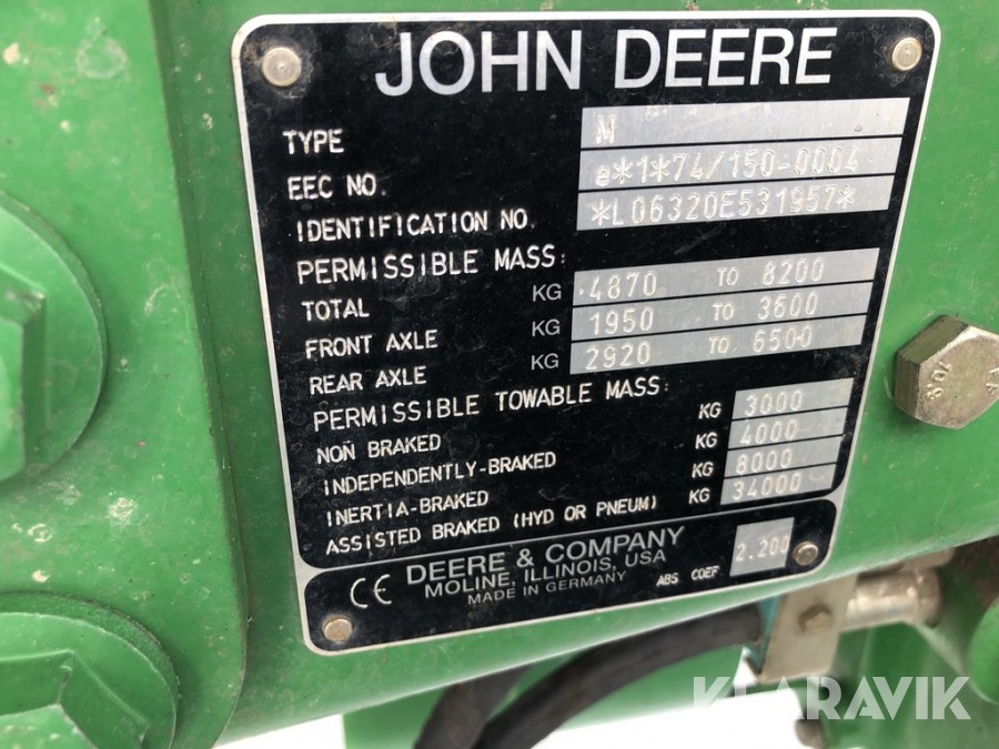 Traktor John Deere 6320 4WD med bandsatser och originalhjul