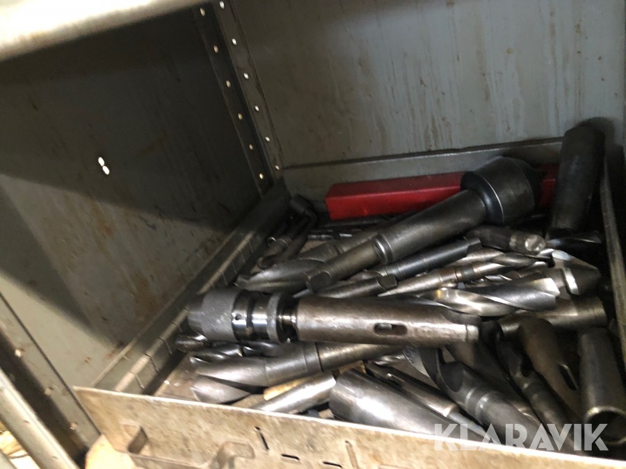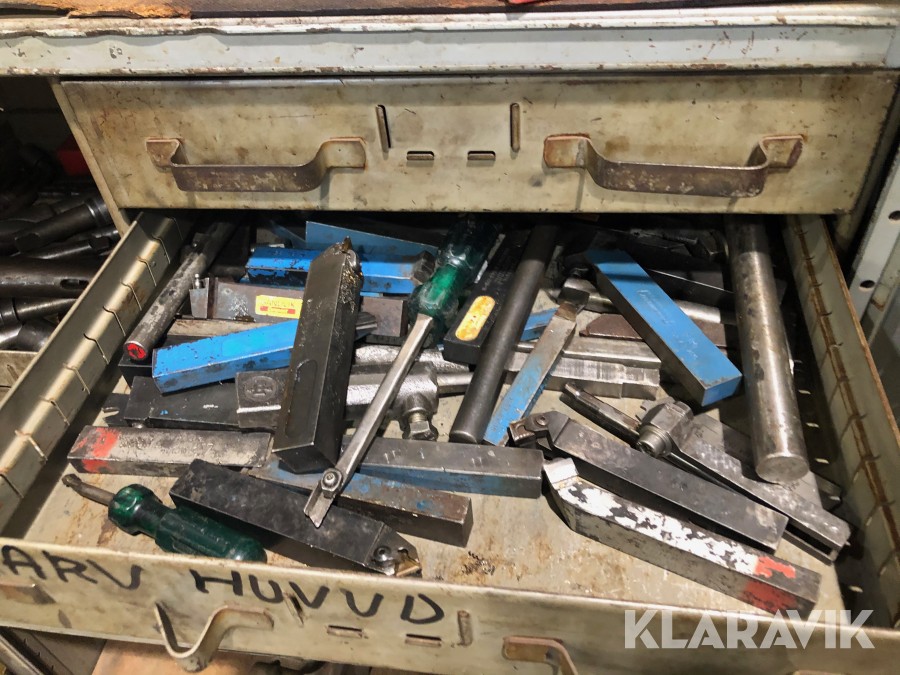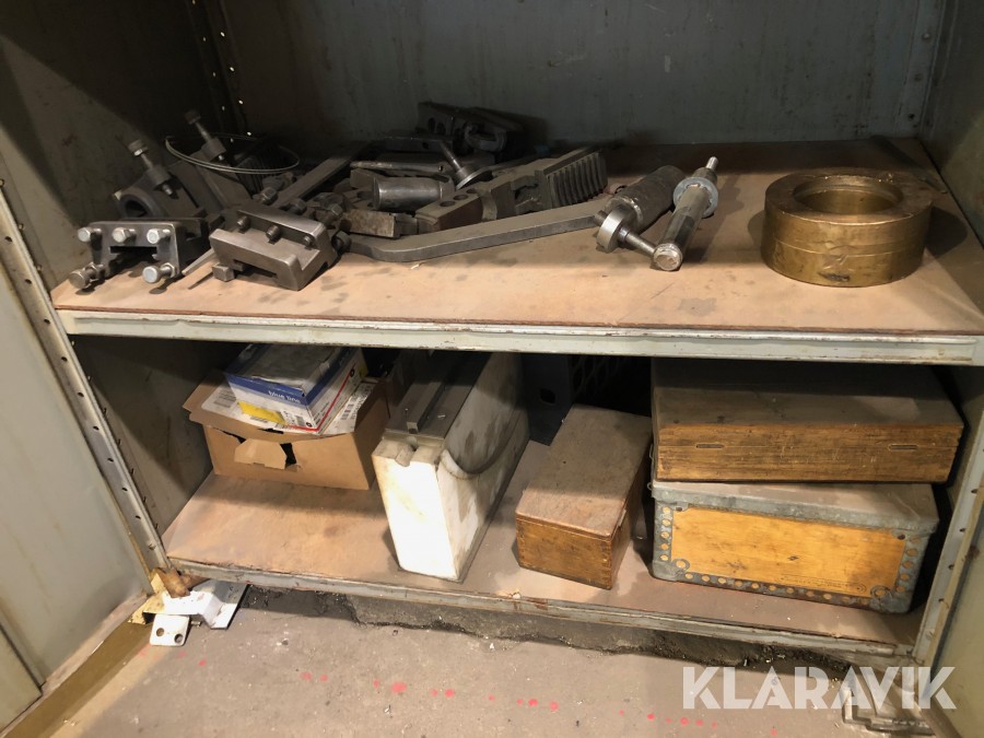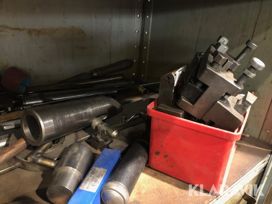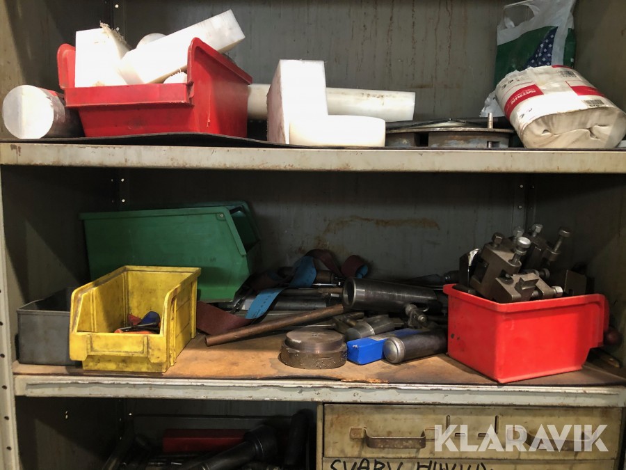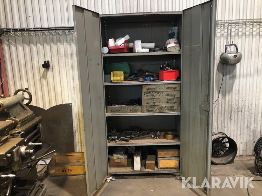 Inkl.stort plåtskåp 100x210cm med backar, dubbar, svarvstål och hållare.