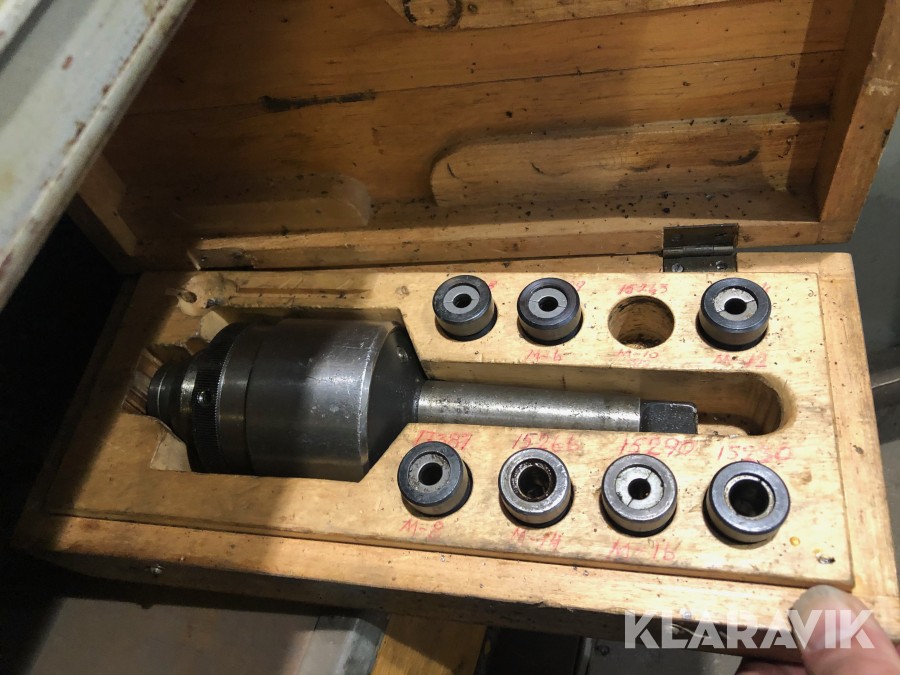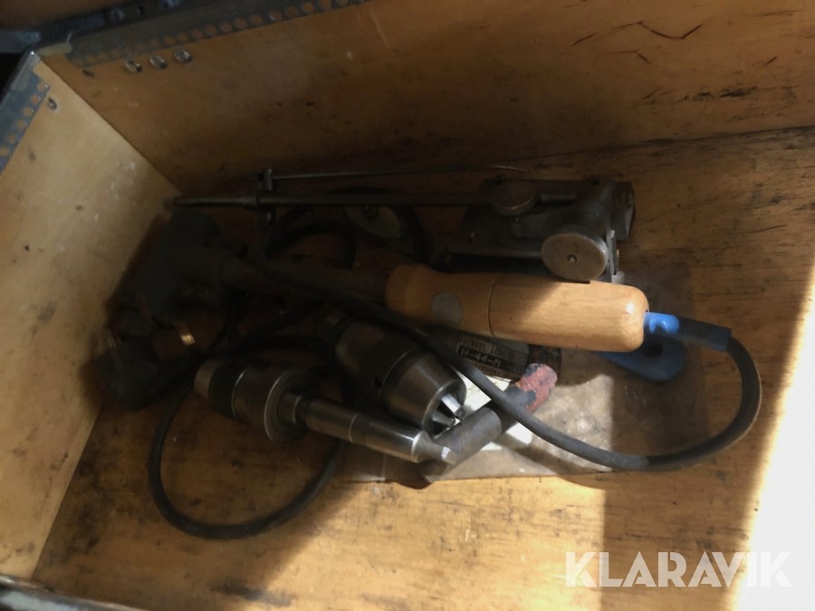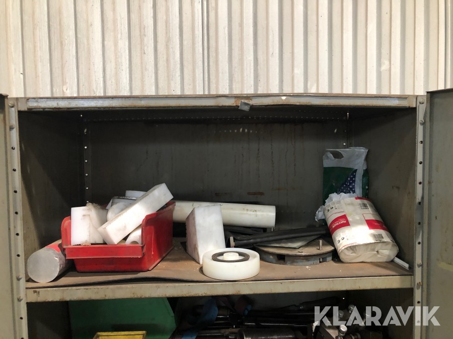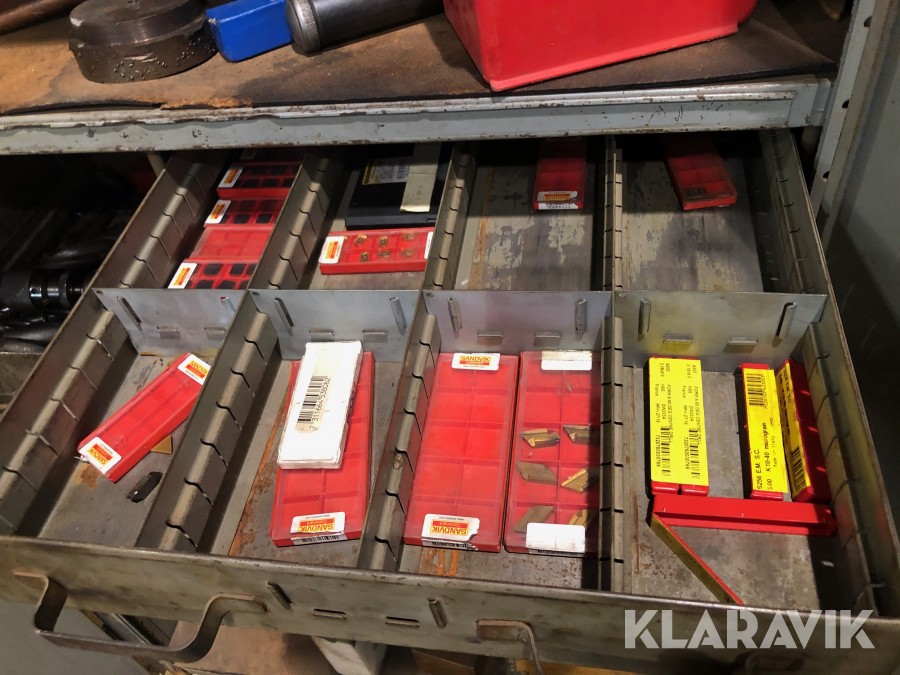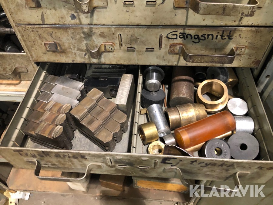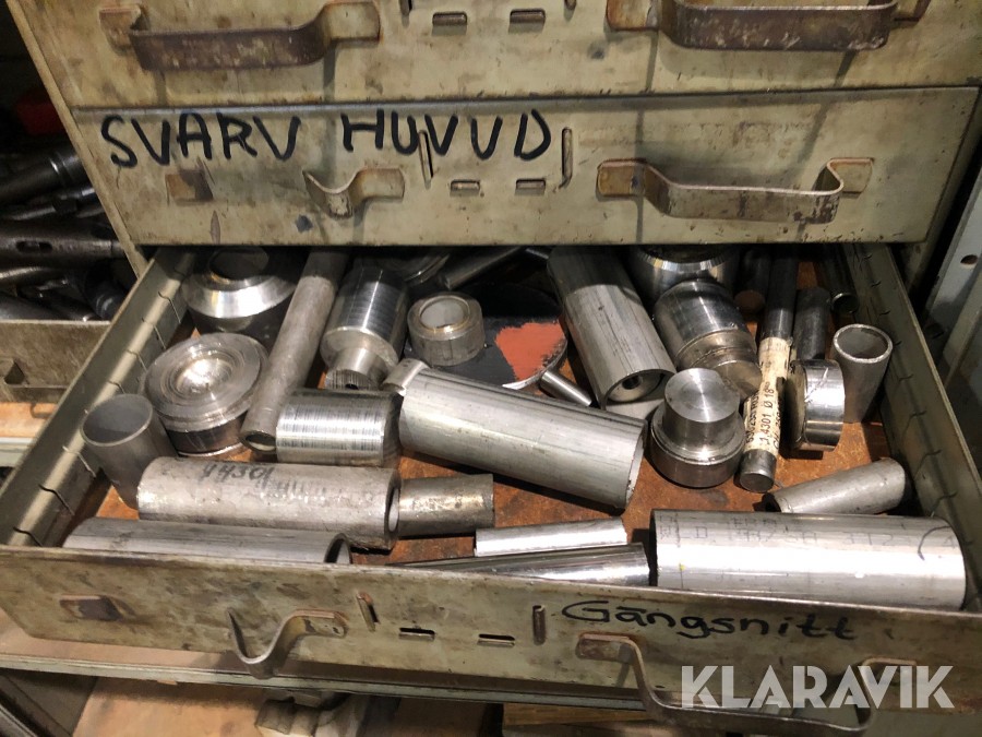 Inkl.stort plåtskåp 100x210cm med backar, dubbar, svarvstål och hållare.