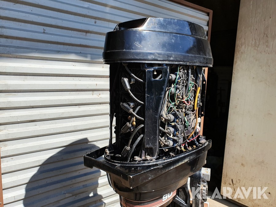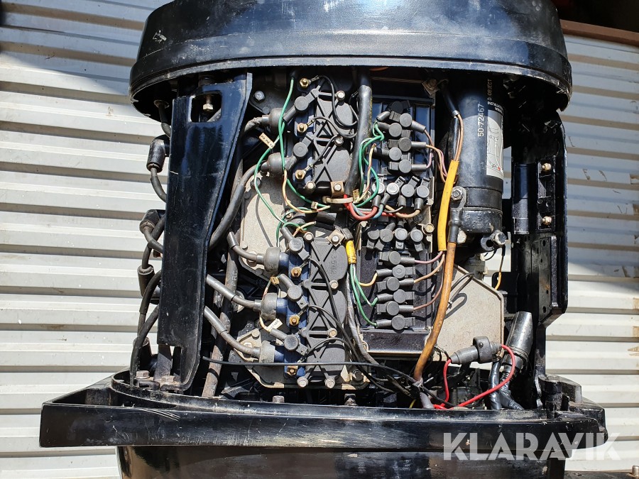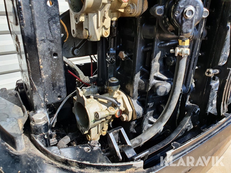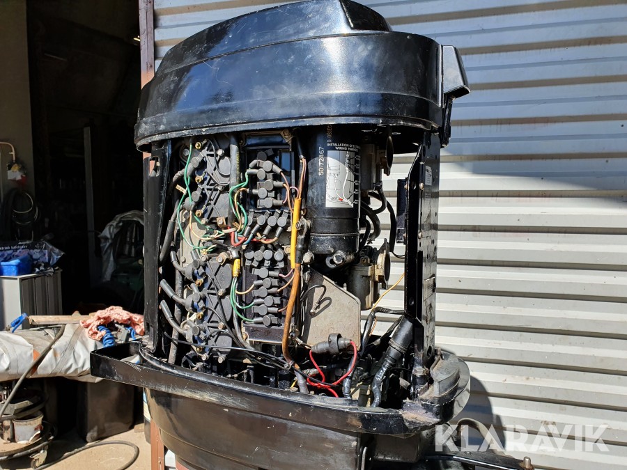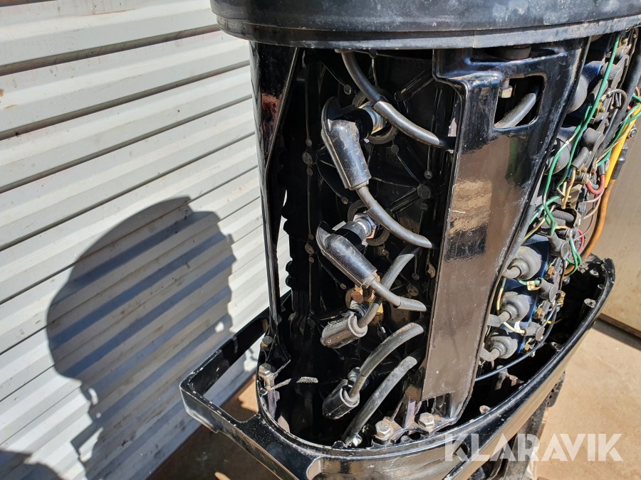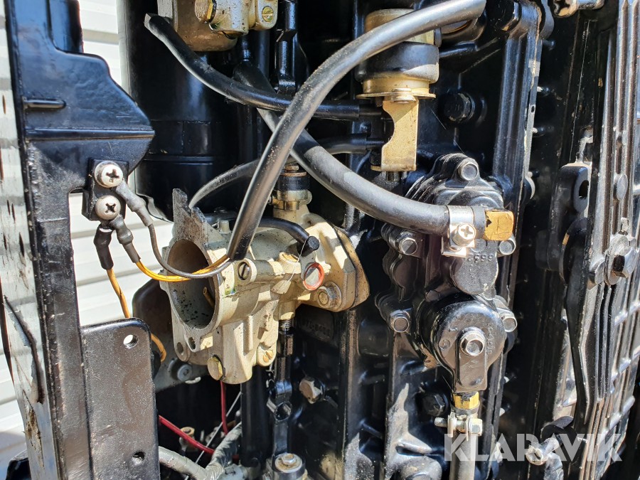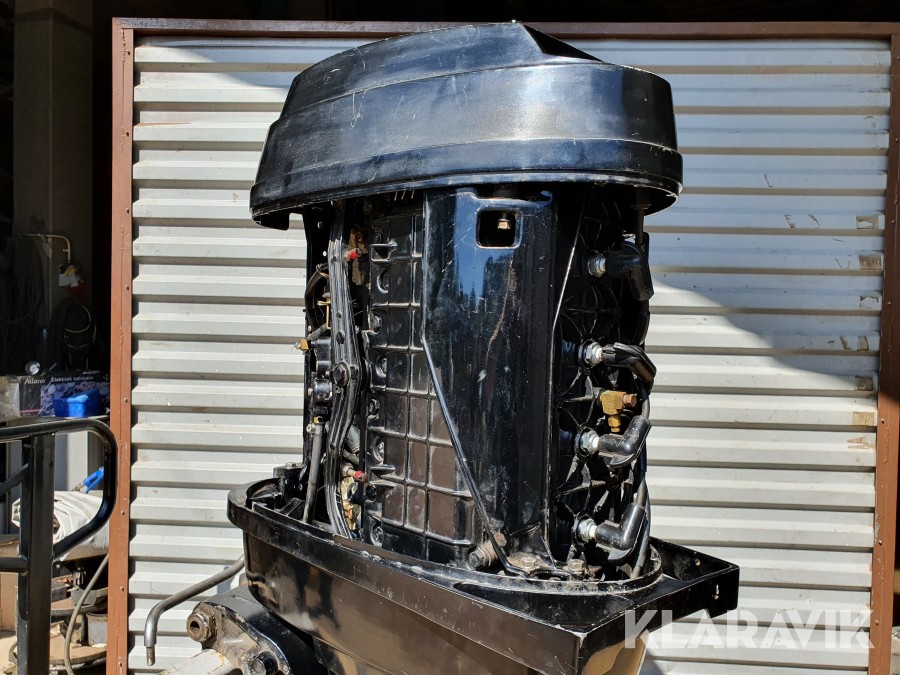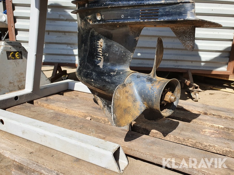 Startad i vattentunna enligt film. Funktioner verkar vara ok vid enklare test, slitage, revor och skav finns. Inget reglage och inga elkablar finns. Motorn är ej servad. Motorstativ ingår ej.