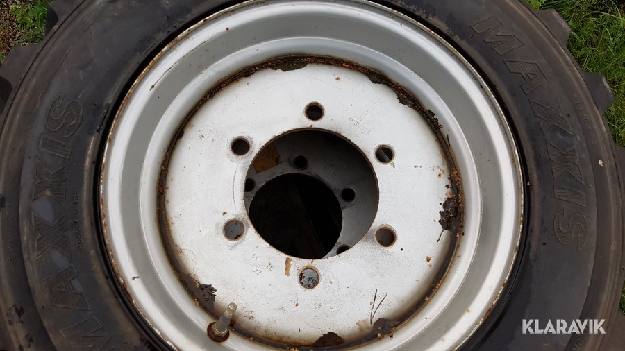 Däck & fälgar är i mycket bra skick, har endast suttit på en ny maskin som fick utbyte till grönytedäck vid leverans.