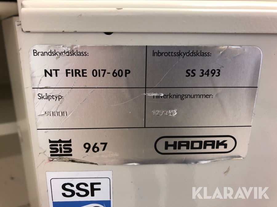 Säkerhetsskåp Hadak 9000 klass ss3493