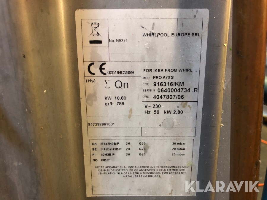 Gasspis/ugn Ikea/Whirlpool PRO A70 S med gasregulator