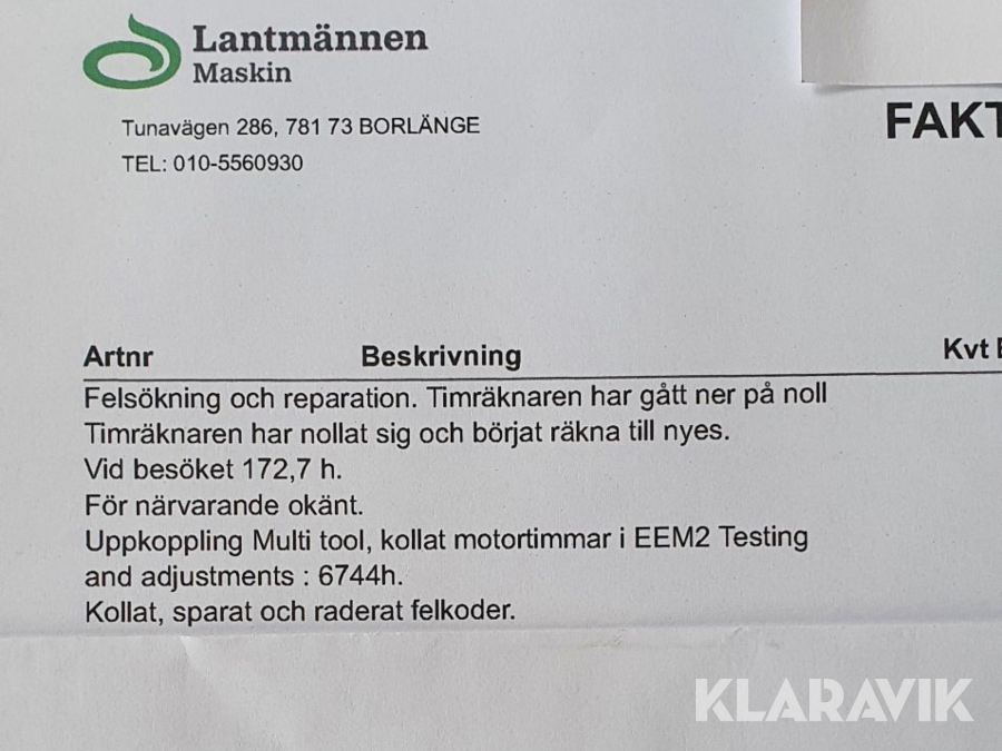 Du som köpare är skyldig att kontrollera objektet vid hämtning. Skiljer sig något avsevärt jämfört med informationen på klaravik.se? Kontakta då Klaravik innan du tar objektet från platsen. Läs fullständiga köpvillkor.
