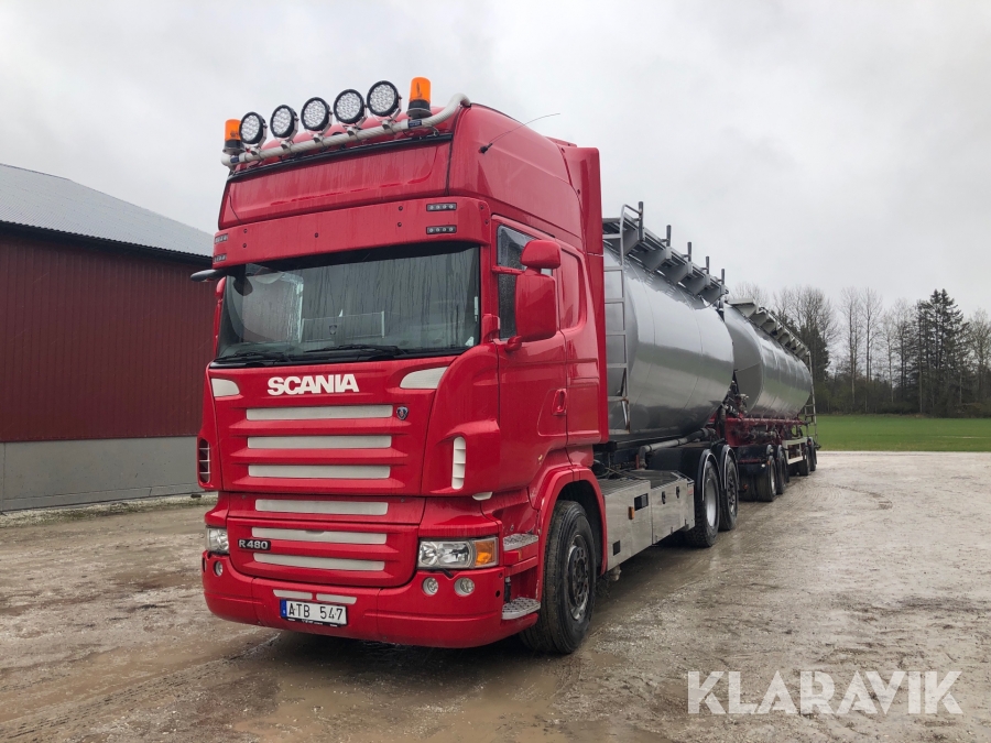Lastbil Scania 480 bulkbil med släp