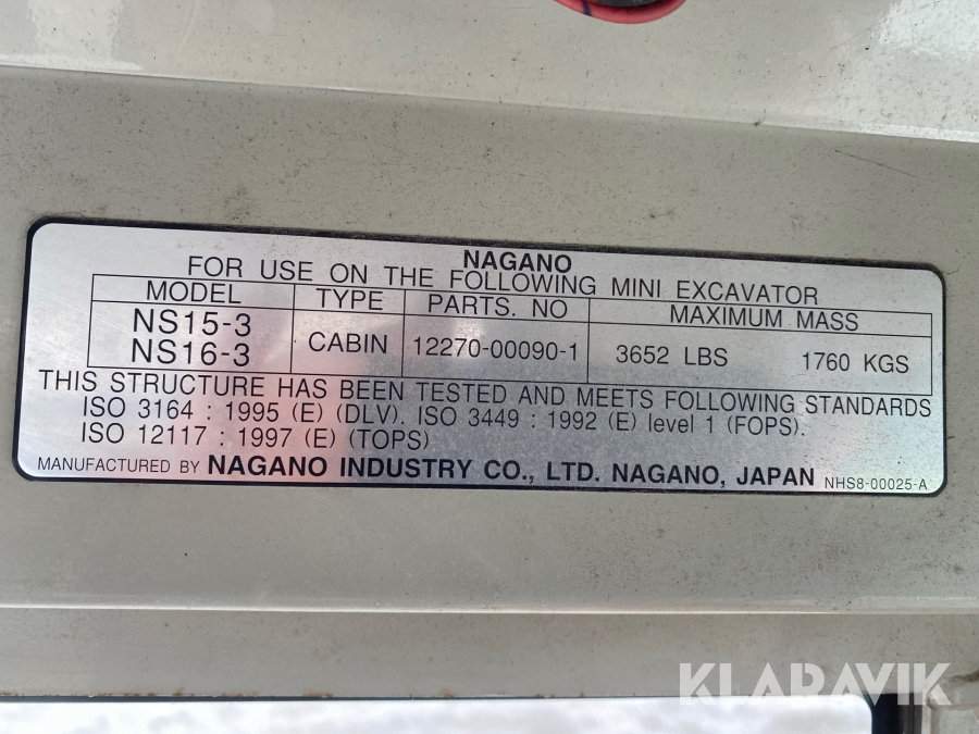 Grävmaskin Nagano N17 med redskap