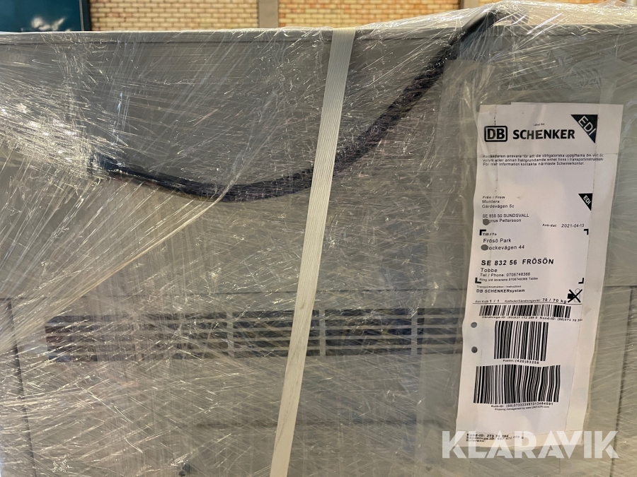 Boka frakt? Det finns ingen specifik information om frakt för just det här objektet, men om du skickar oss en förfrågan via vårt fraktformulär, så undersöker vi möjligheten. Paket, EU-pall eller större maskin? Klaravik har fraktavtal med Schenker och i de fall vi kan hjälpa till med frakt gäller det objekt som ryms i paket eller inom en EU-pall (upp till 120*80 cm och 990 kg). Det går att beställa frakt inom Sverige, dock inte till utlandet. Vid frakt på större maskiner rekommenderar vi gärna transportföretag som du kan kontakta.