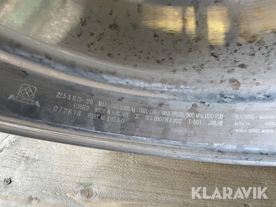Fälgar (Aluminium) Alcoa 9,00 x 22,5 / 11,75 x 22,5 6st