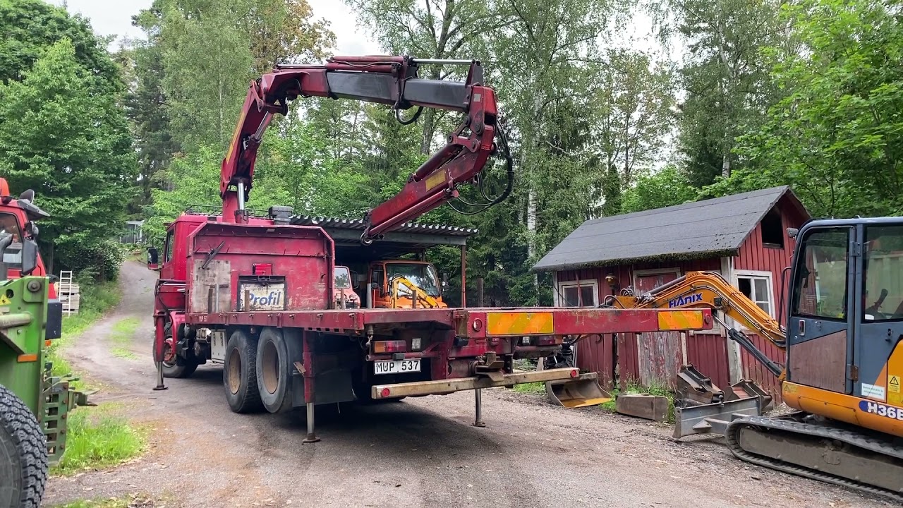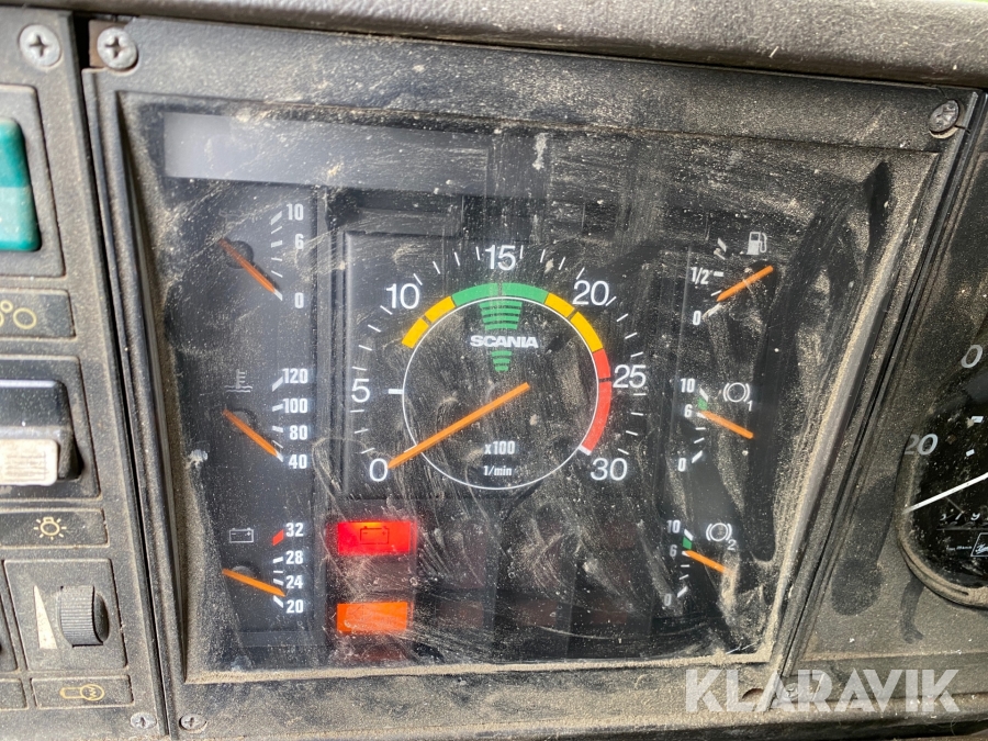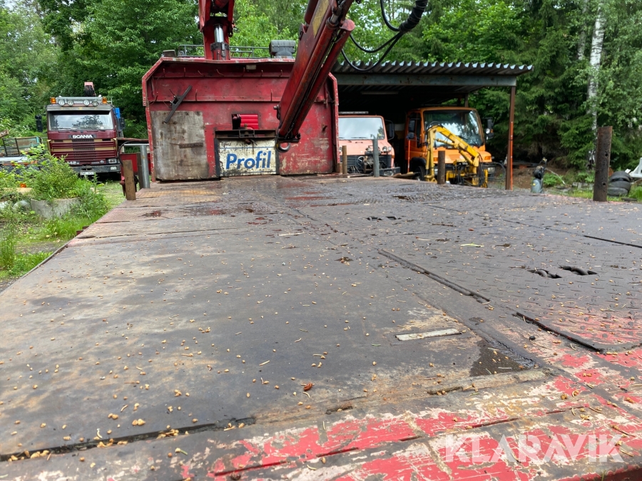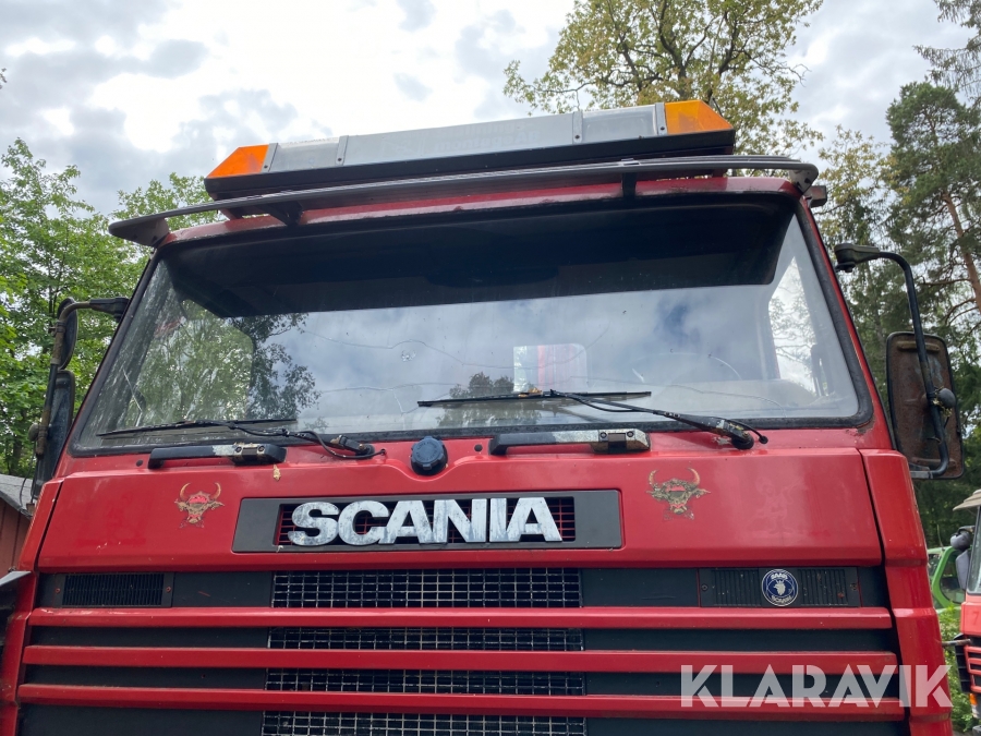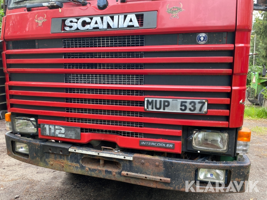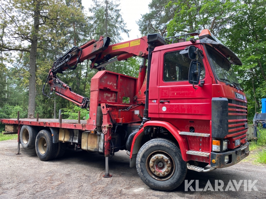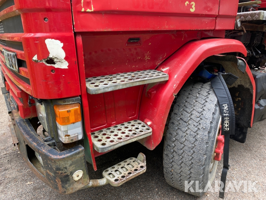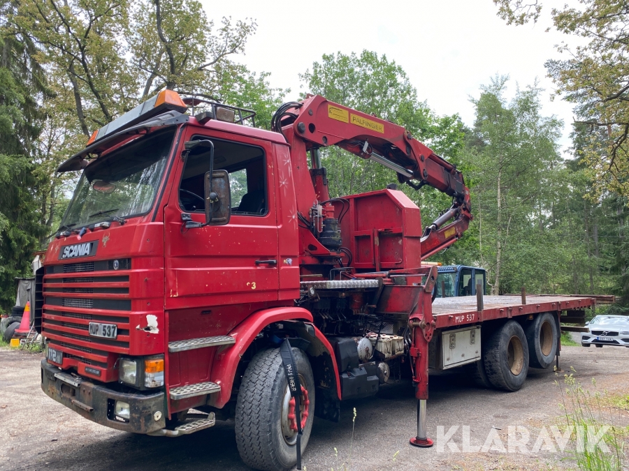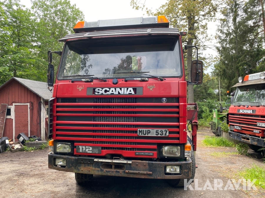 Lastväxlare Scania R112H 6X2 med maskinflak och kran