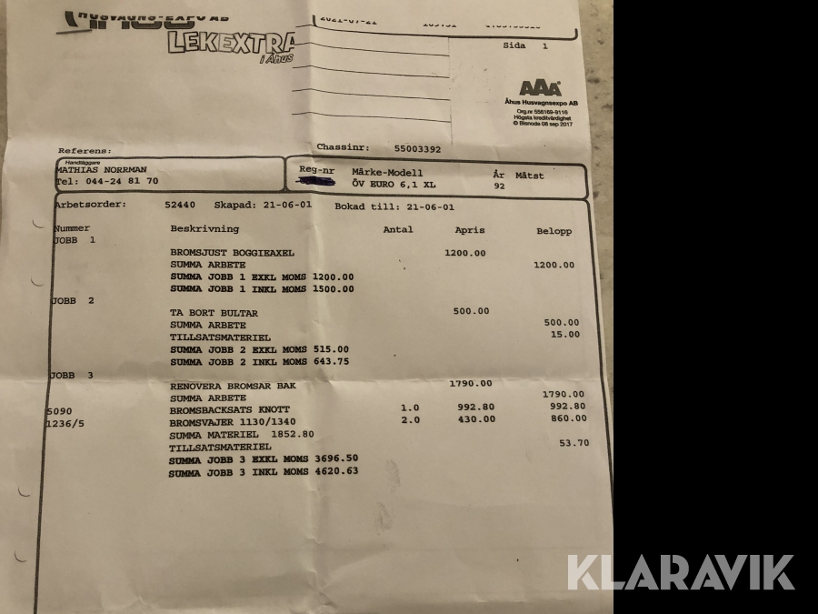 Du som köpare är skyldig att kontrollera objektet vid hämtning. Skiljer sig något avsevärt jämfört med informationen på klaravik.se? Kontakta då Klaravik innan du tar objektet från platsen. Läs fullständiga köpvillkor.
