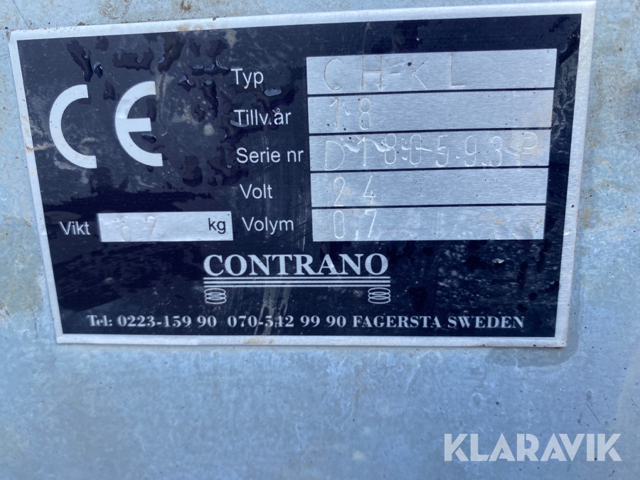 Boka frakt? Det finns ingen specifik information om frakt för just det här objektet, men om du skickar oss en förfrågan via vårt fraktformulär, så undersöker vi möjligheten. Paket, EU-pall eller större maskin? Klaravik har fraktavtal med Schenker och i de fall vi kan hjälpa till med frakt gäller det objekt som ryms i paket eller inom en EU-pall (upp till 120*80 cm och 990 kg). Det går att beställa frakt inom Sverige, dock inte till utlandet. Vid frakt på större maskiner rekommenderar vi gärna transportföretag som du kan kontakta.