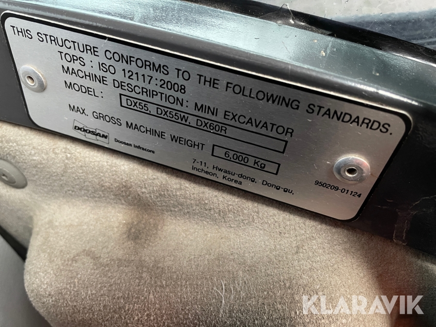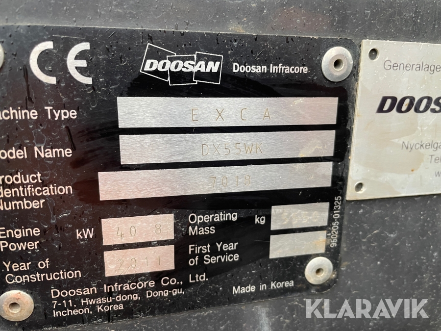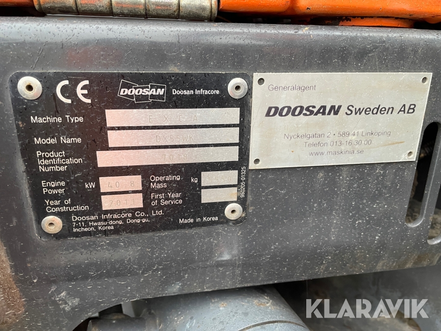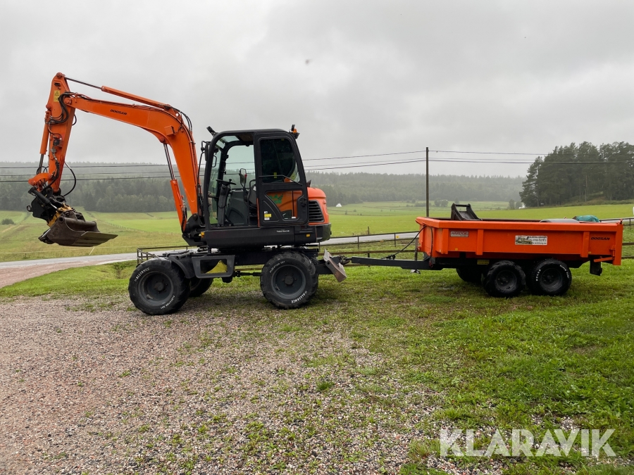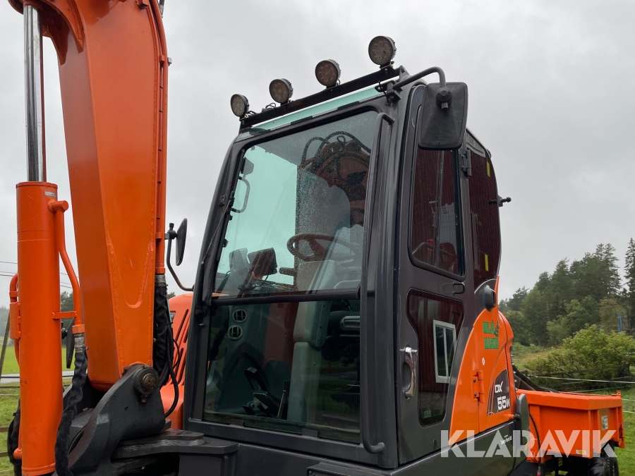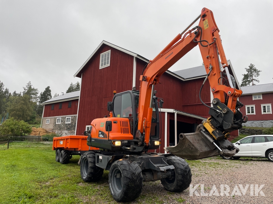 Grävmaskin 6 ton Doosan DX 55 W med vagn och redskap
