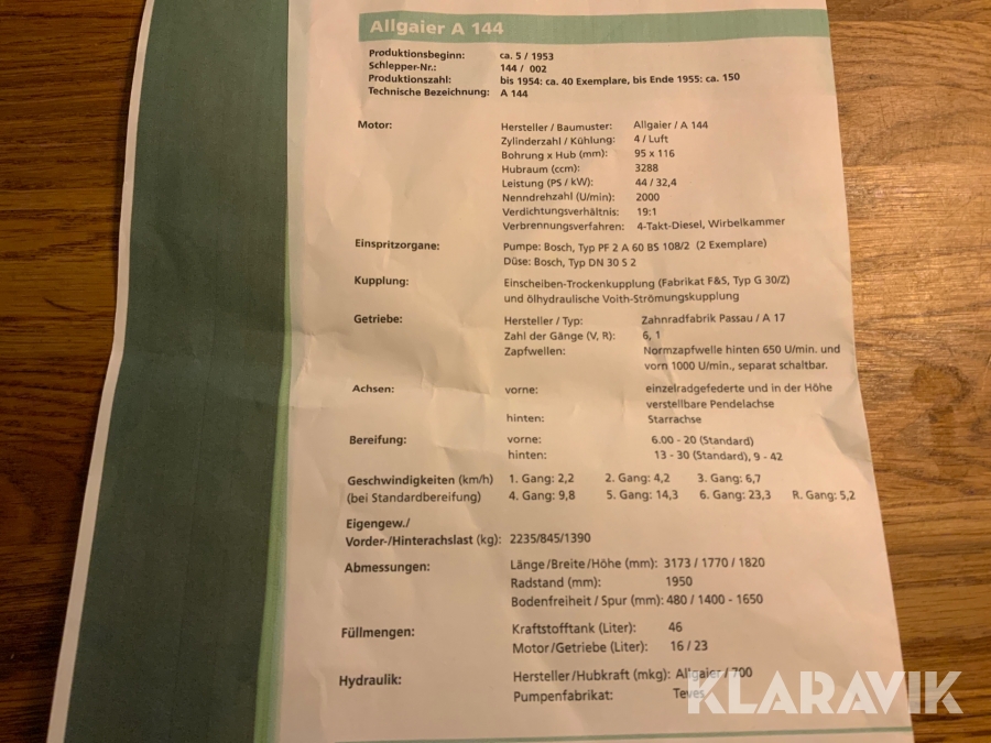 Veterantraktor Porsche Allgaier A 144 -54