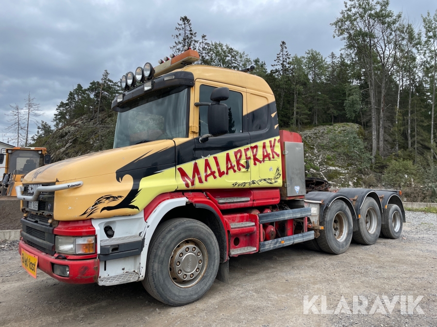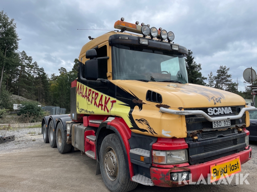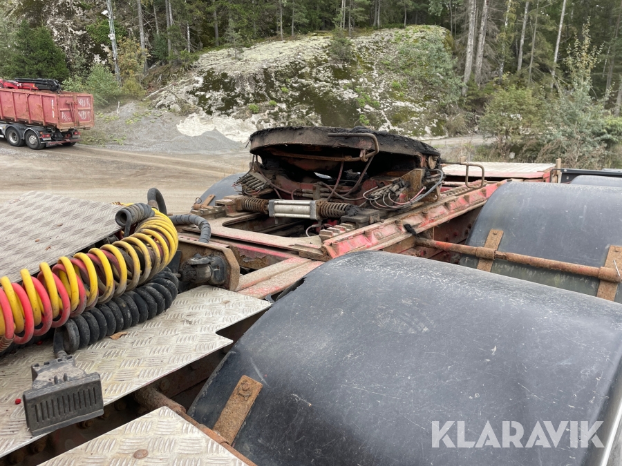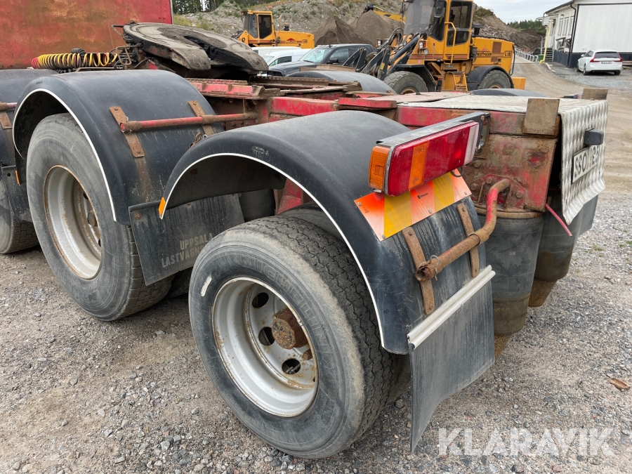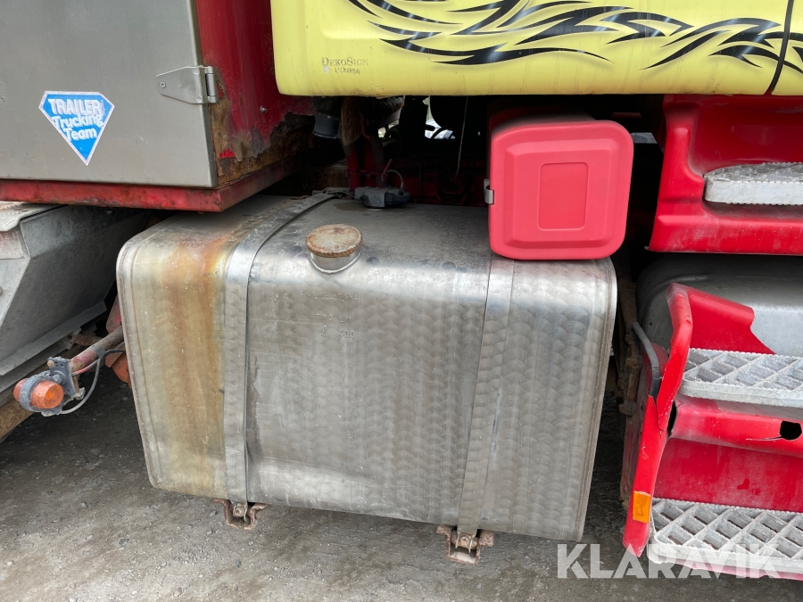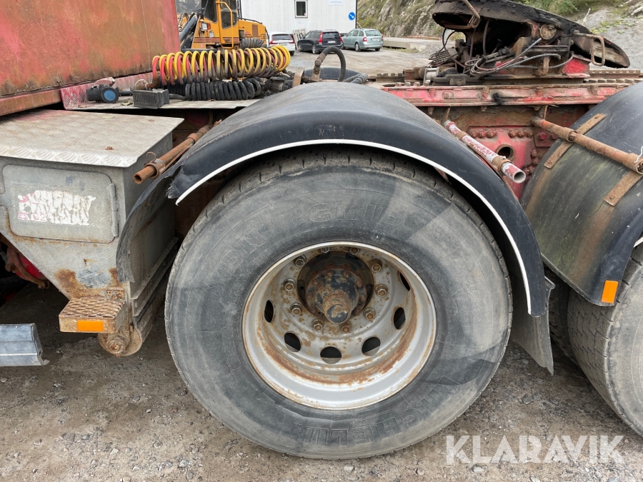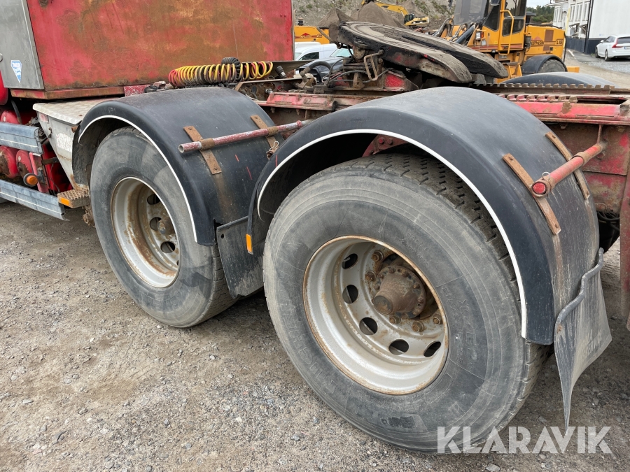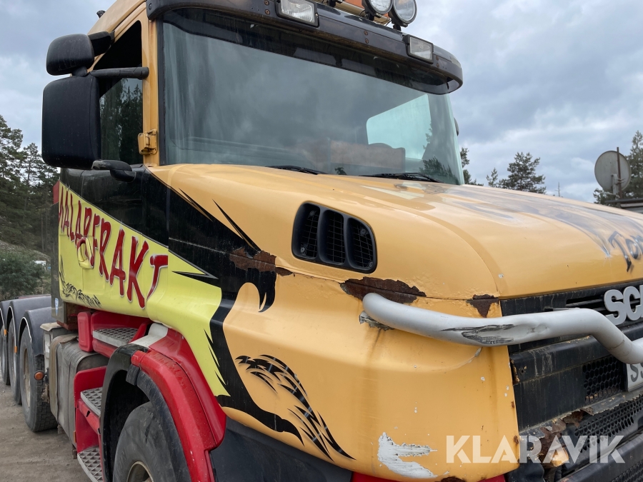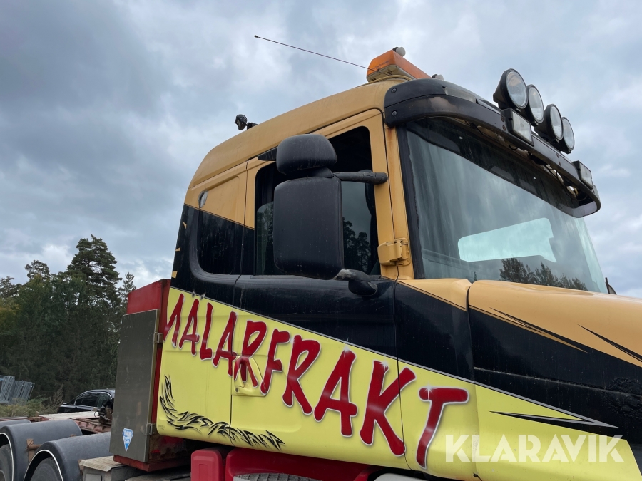 Dragbil Scania 124, 470 med maskintrailer
