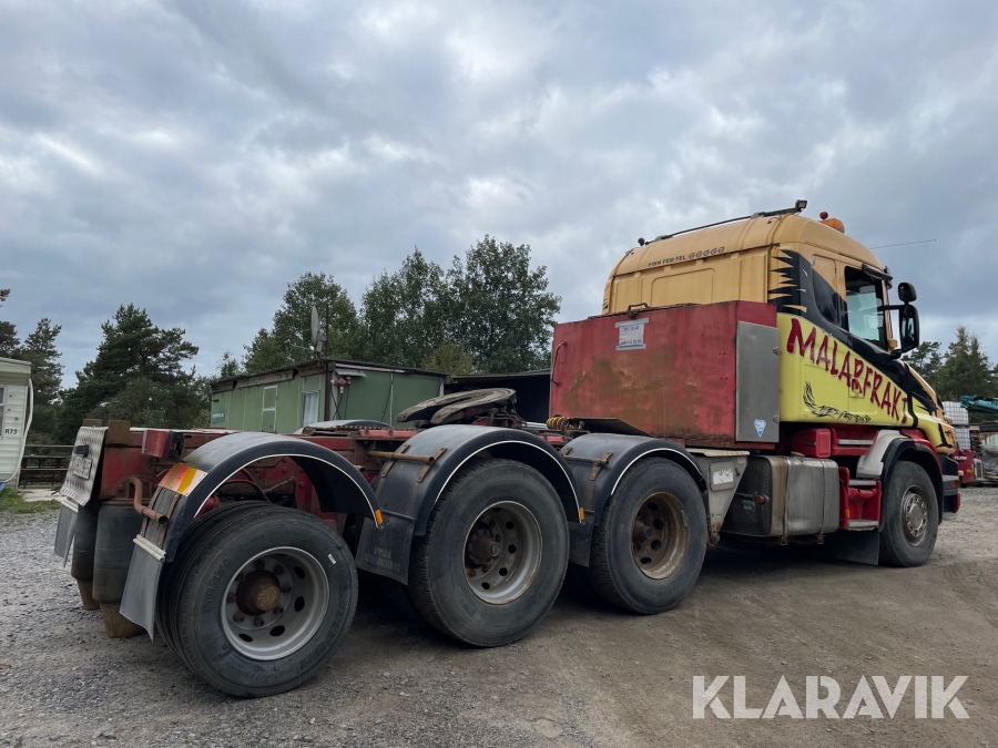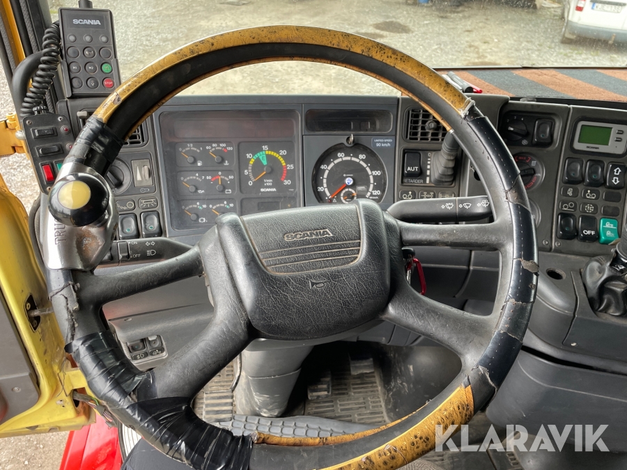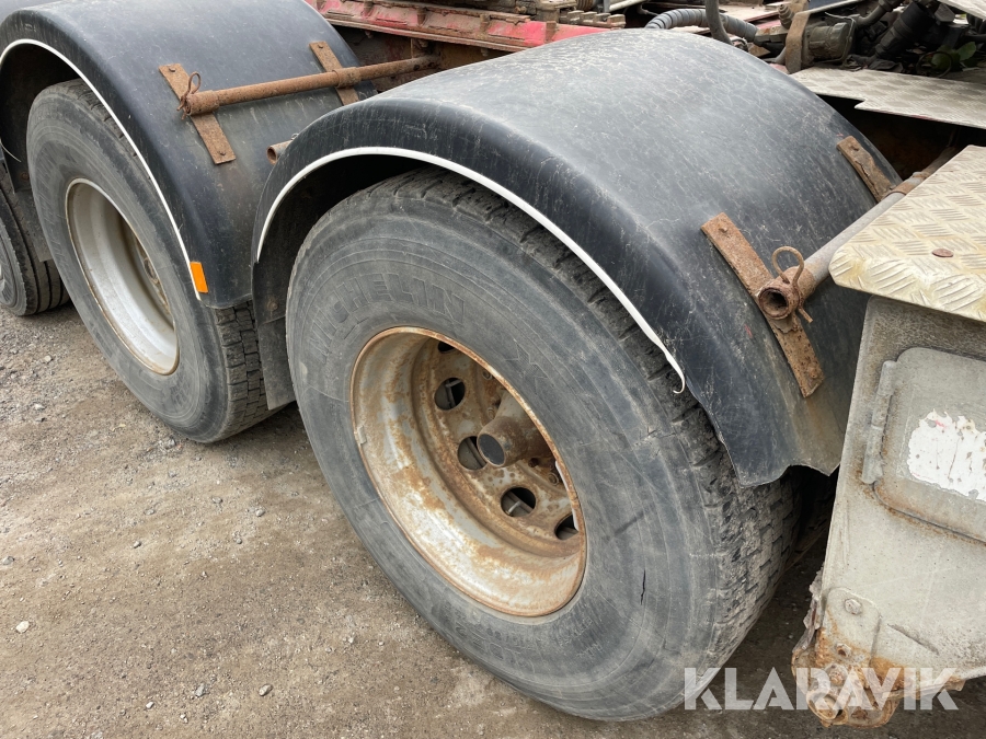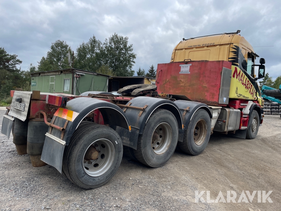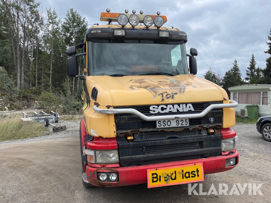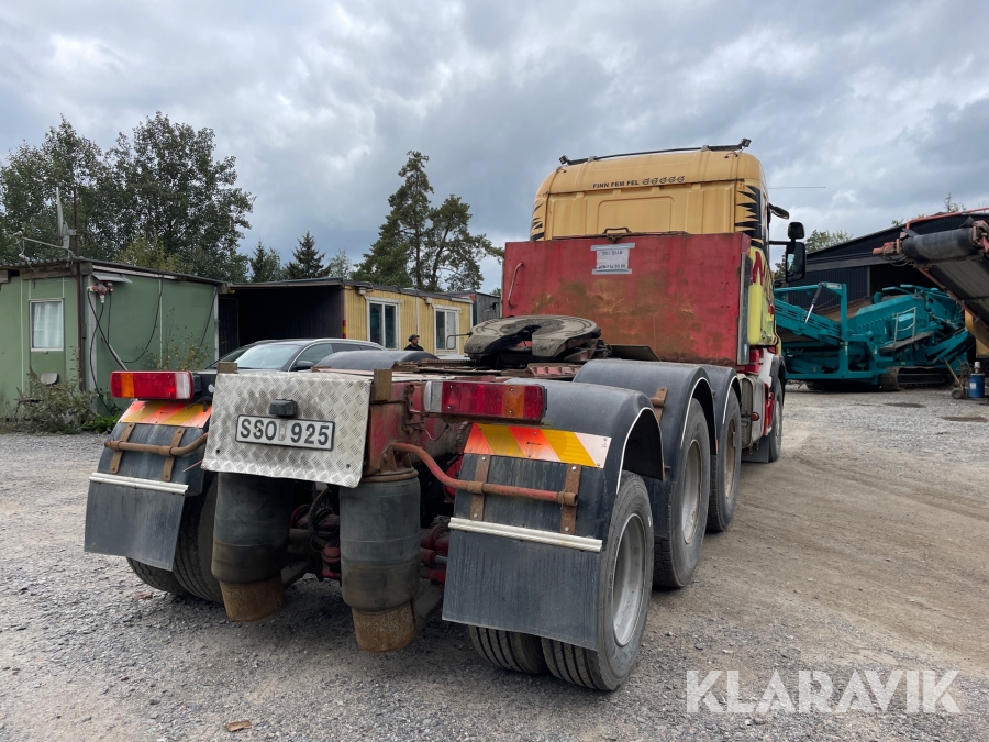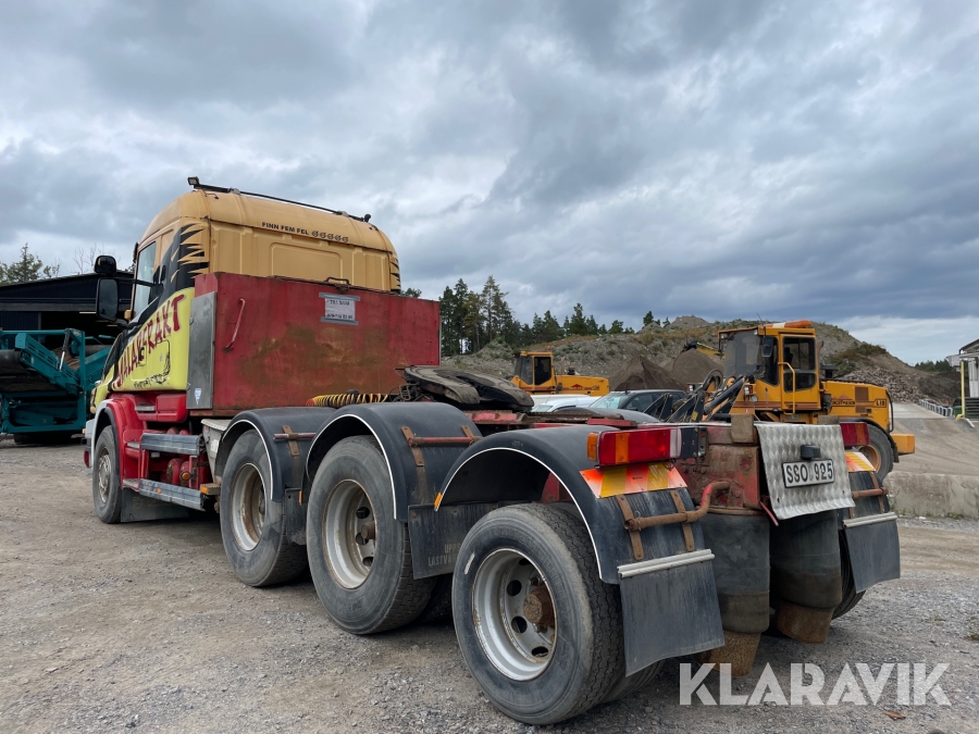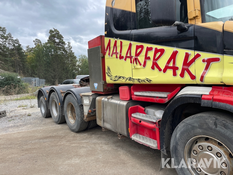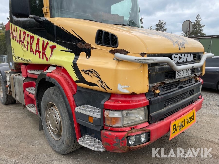 Dragbil Scania 124, 470 med maskintrailer