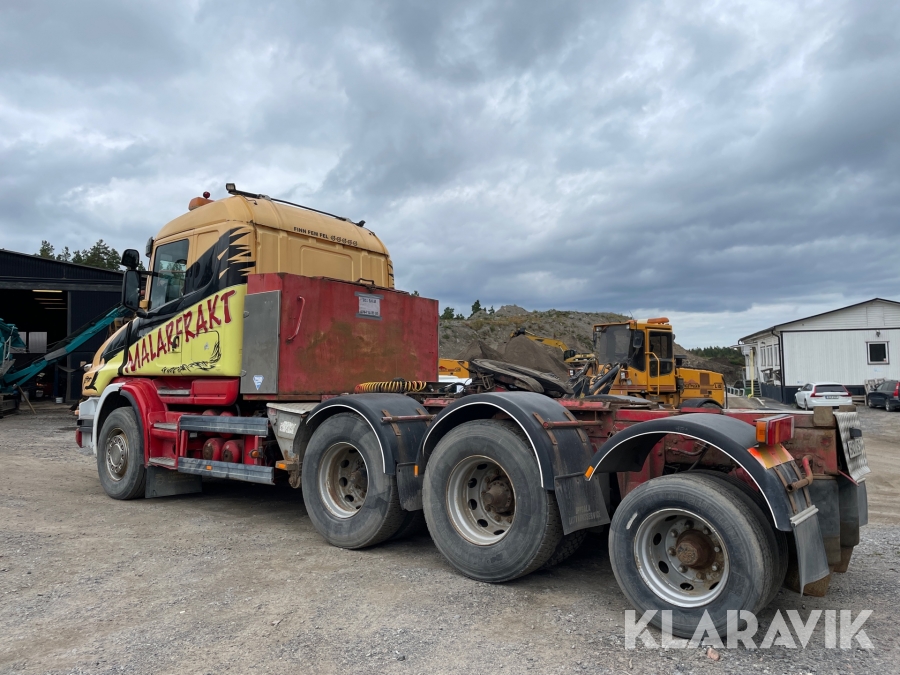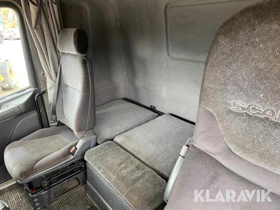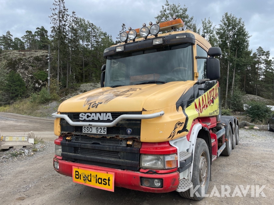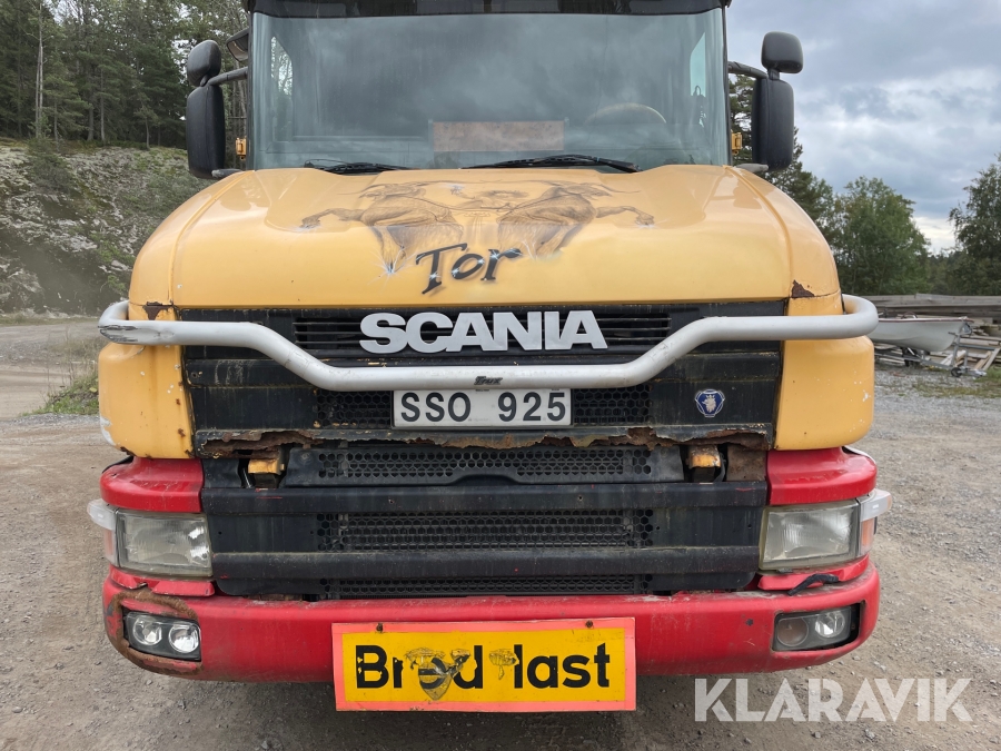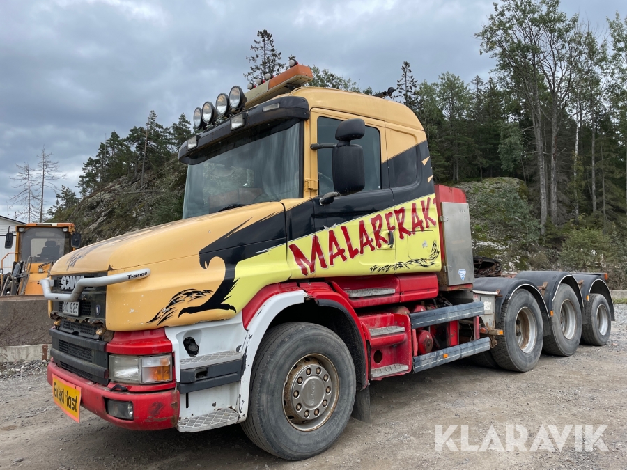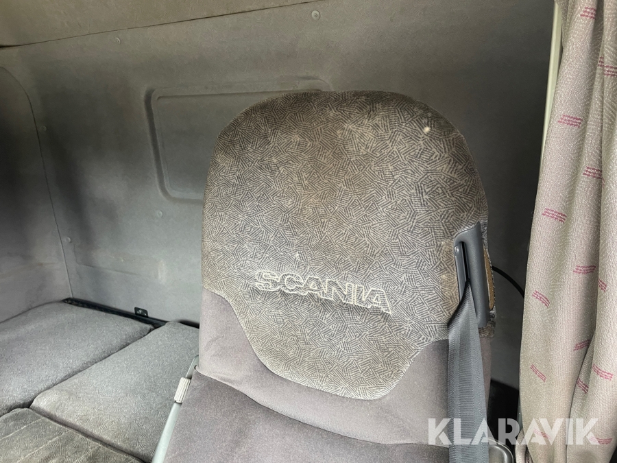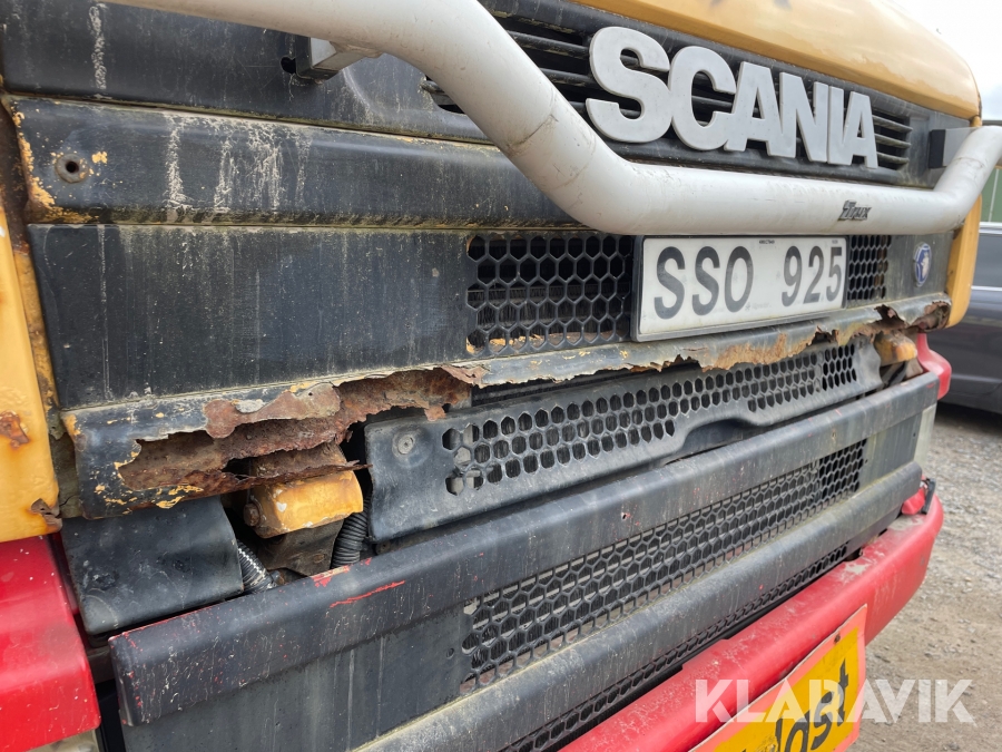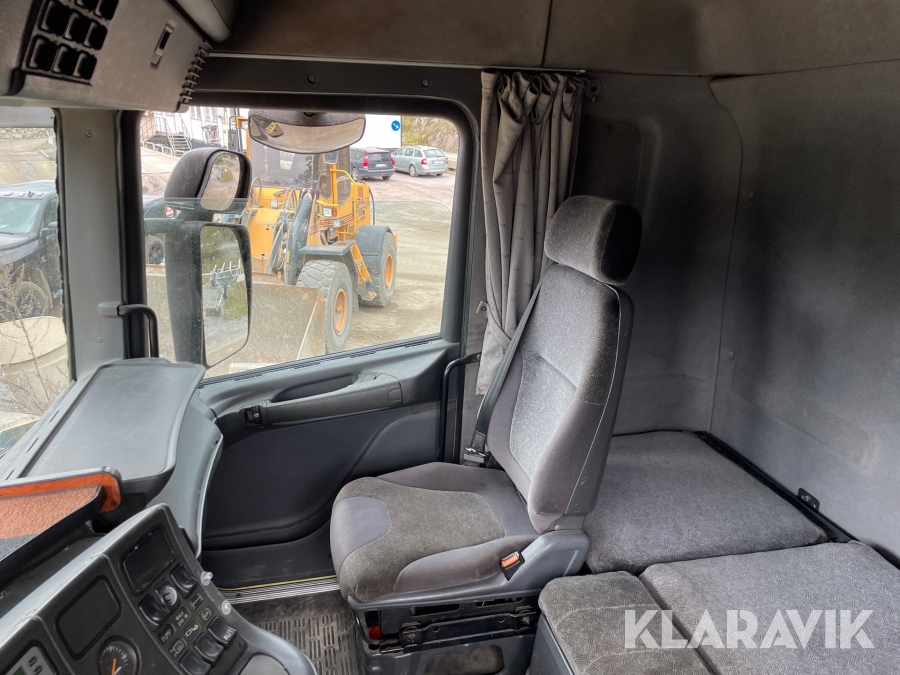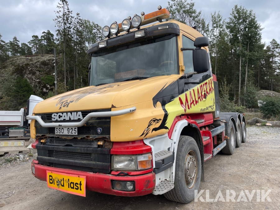 Dragbil Scania 124, 470 med maskintrailer