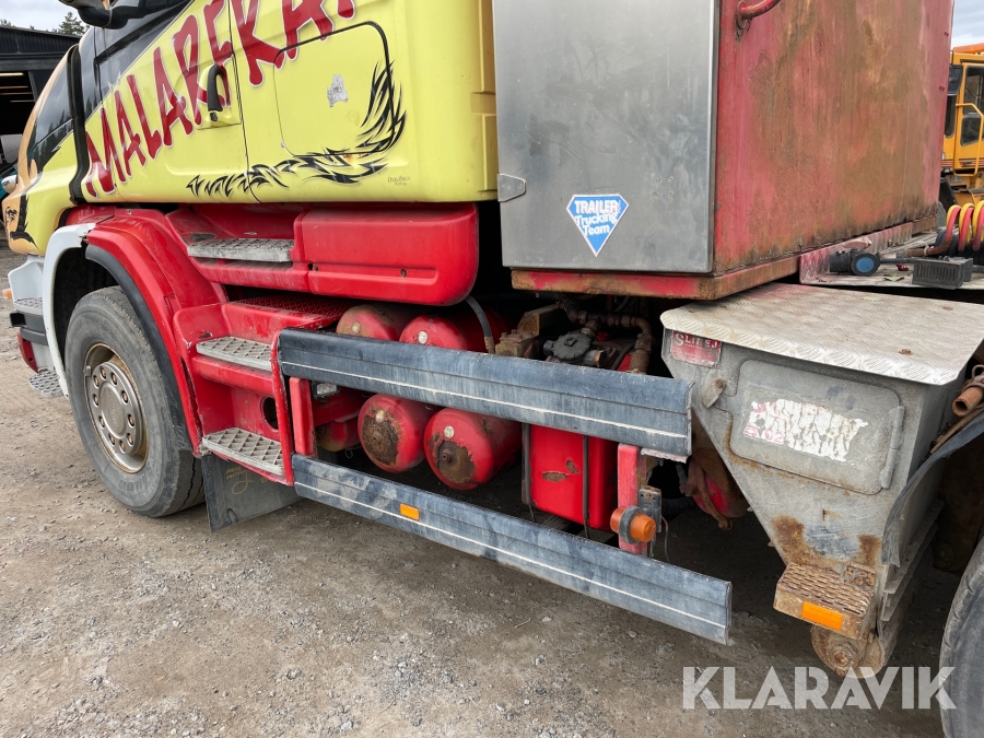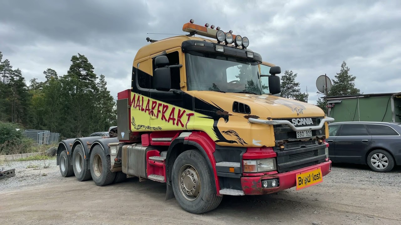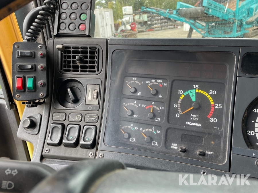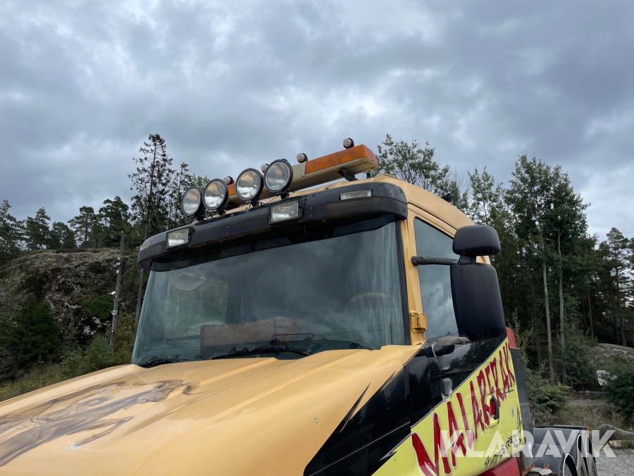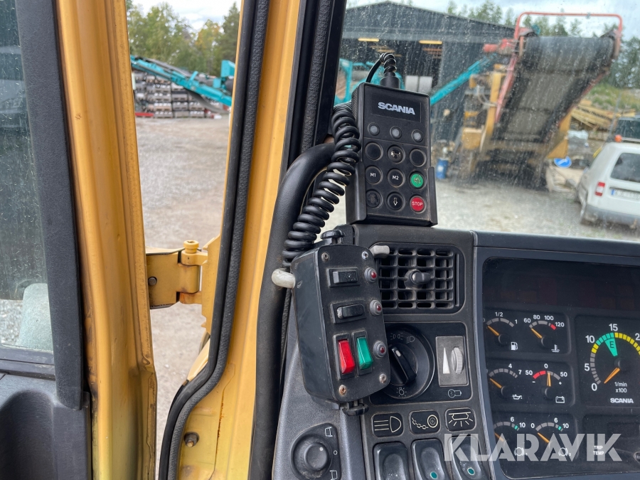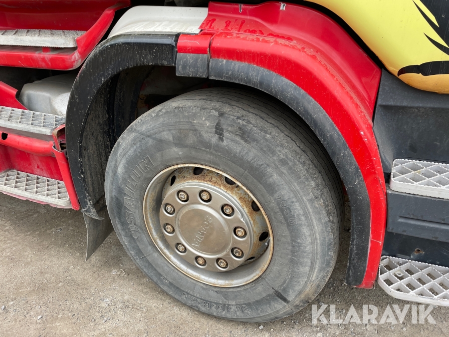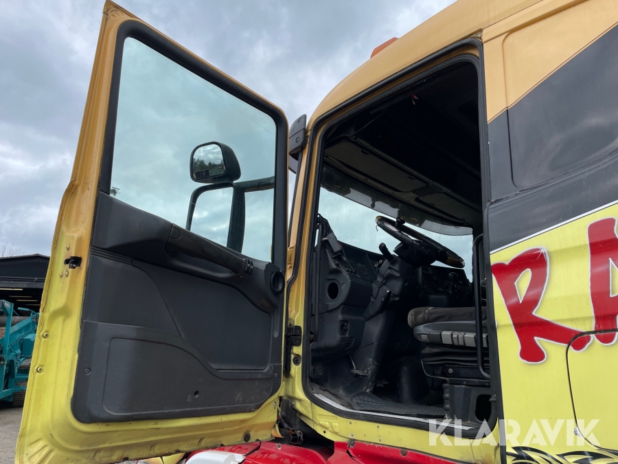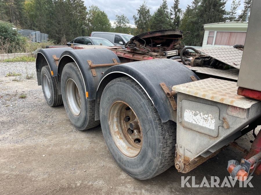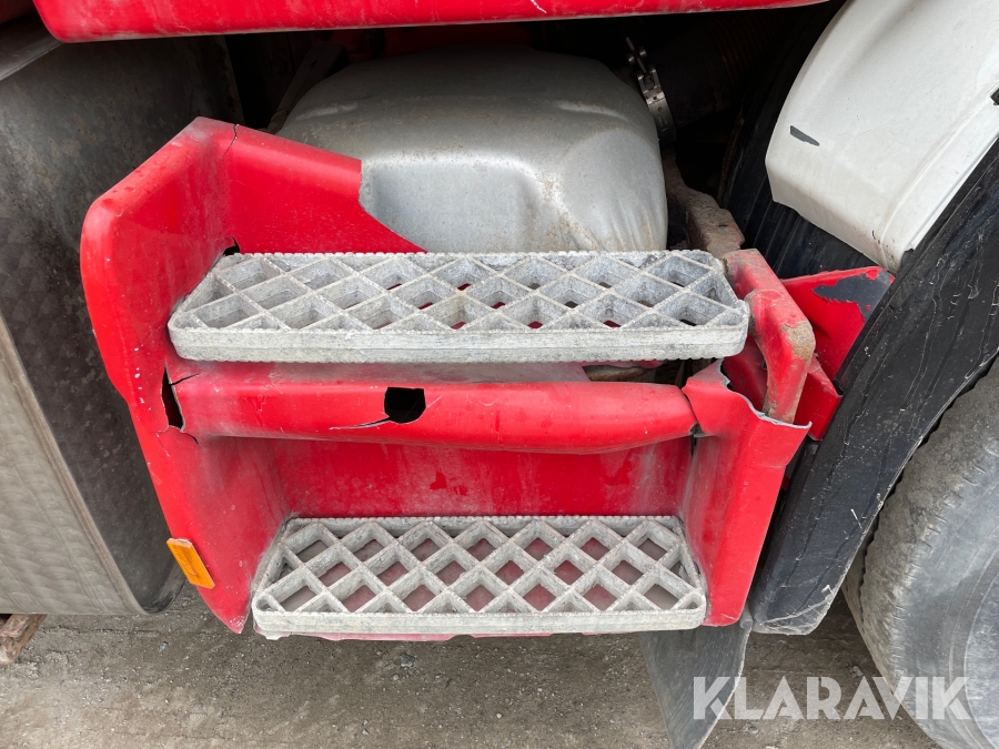 Dragbil Scania 124, 470 med maskintrailer