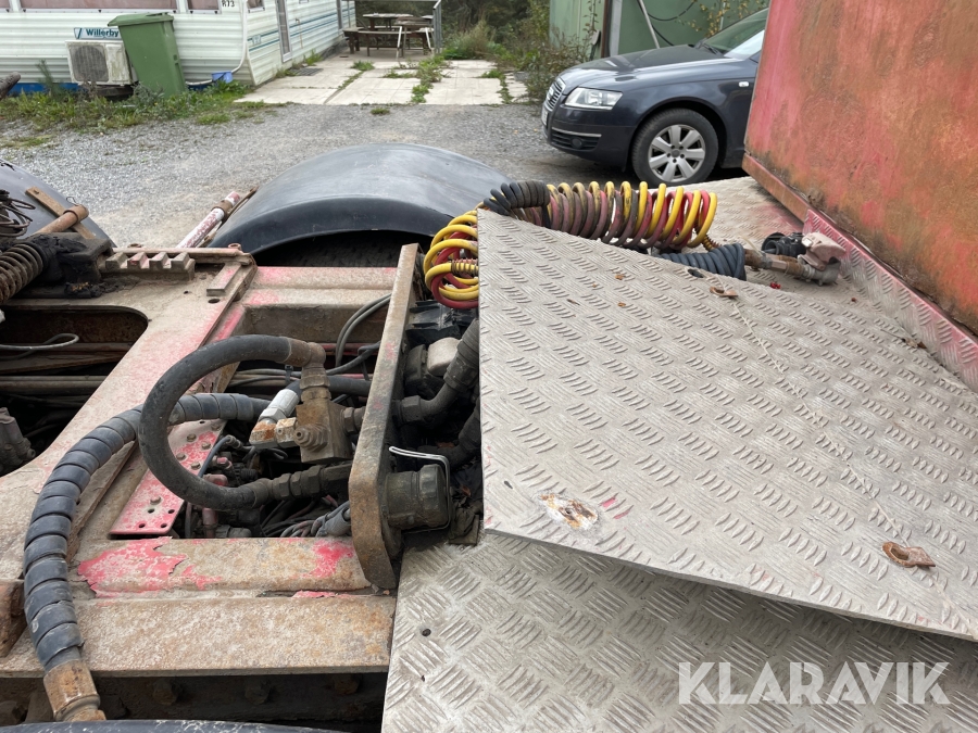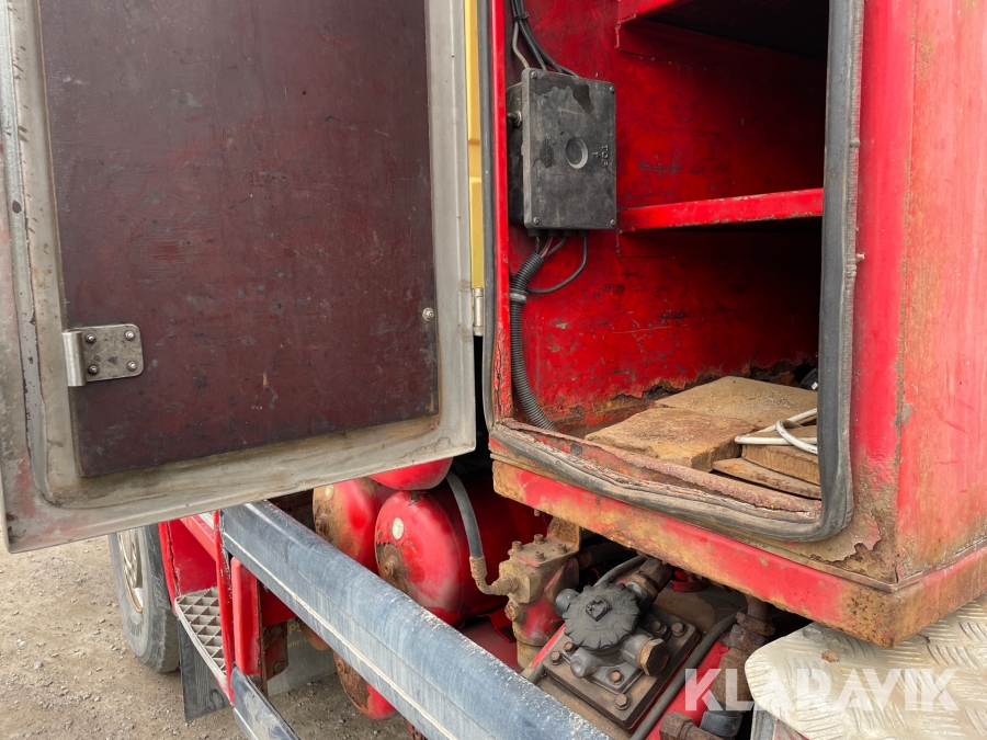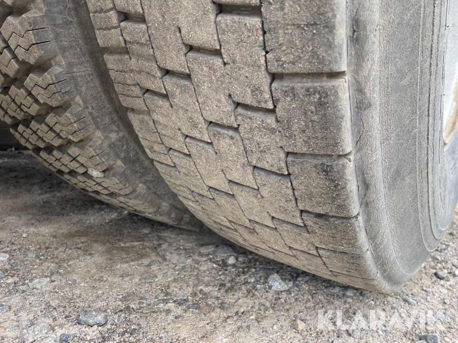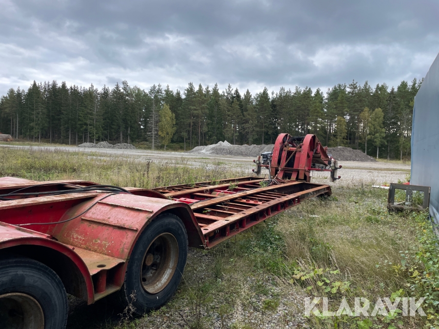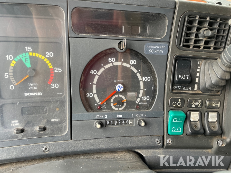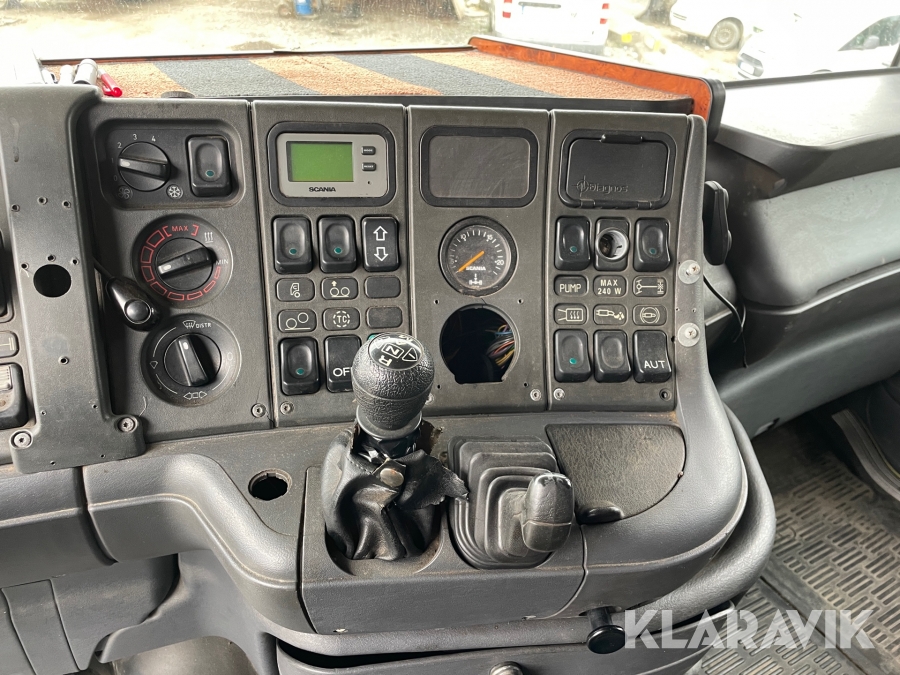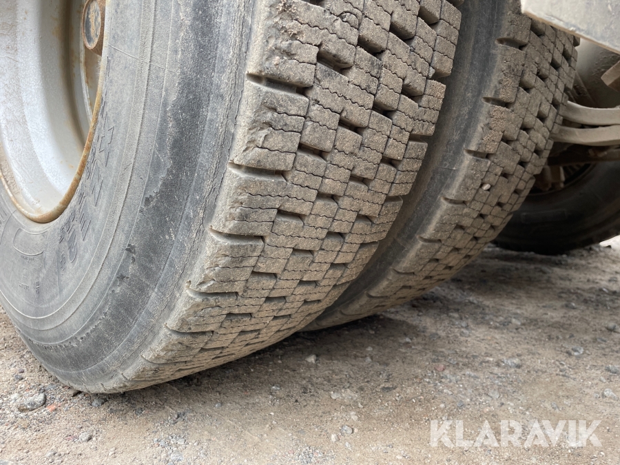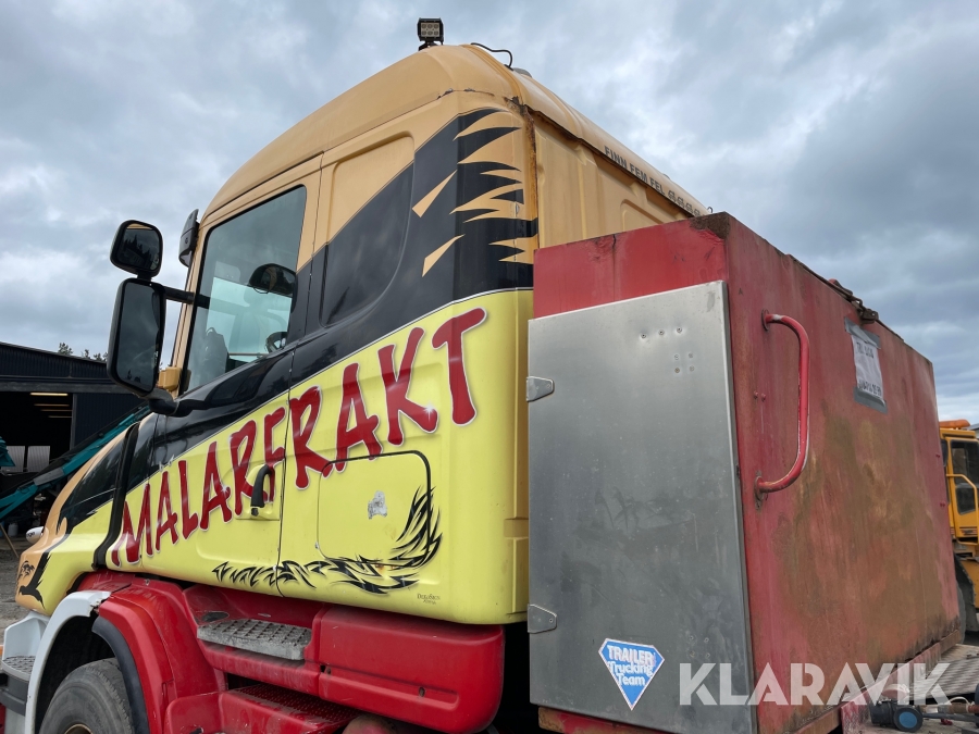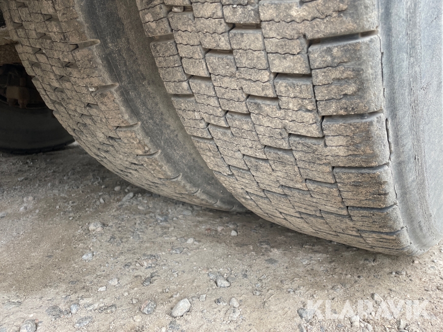 Dragbil Scania 124, 470 med maskintrailer