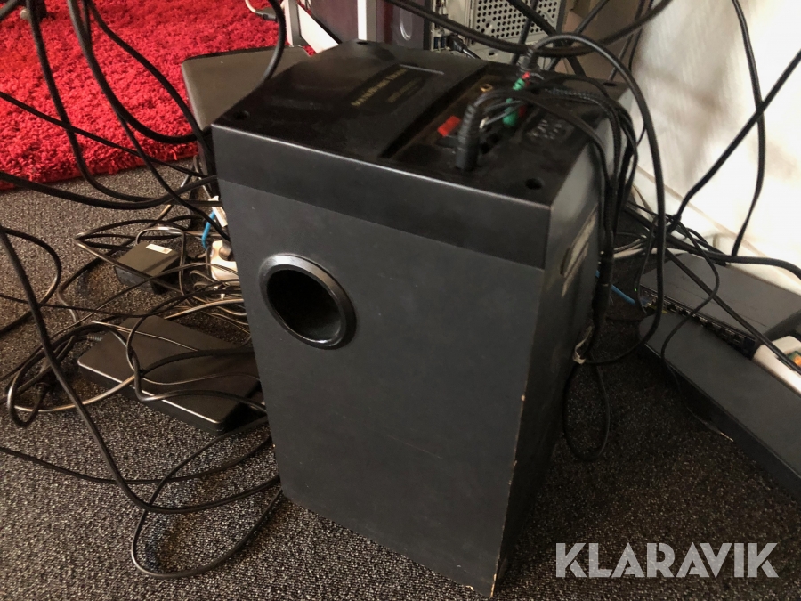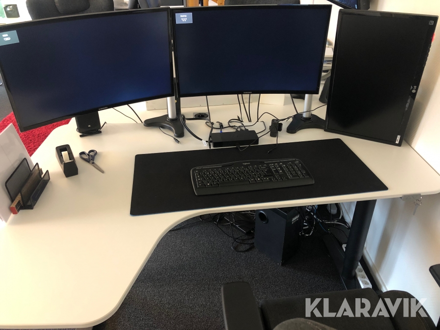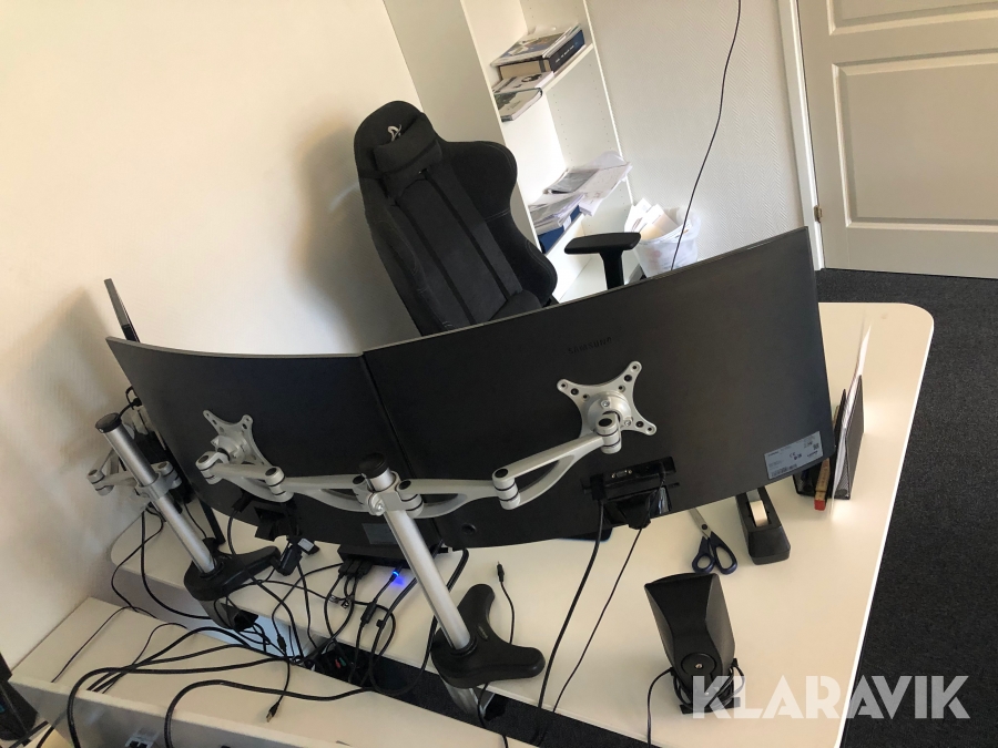 3st dataskärmar samt högtalare/sub och en Laptop-docka
