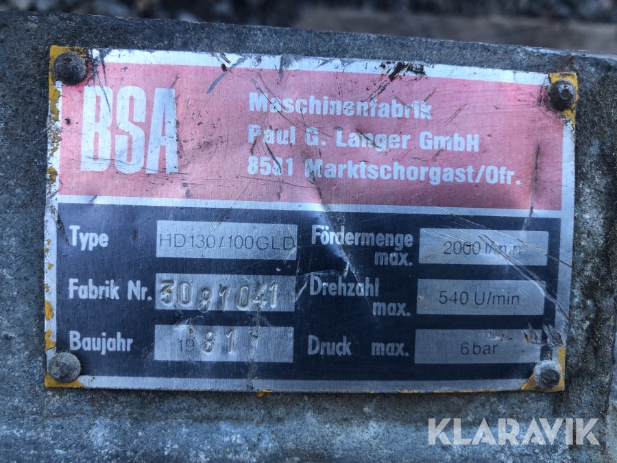 Gödselpump BSA HD130 / 100GLD med tillhörande rör
