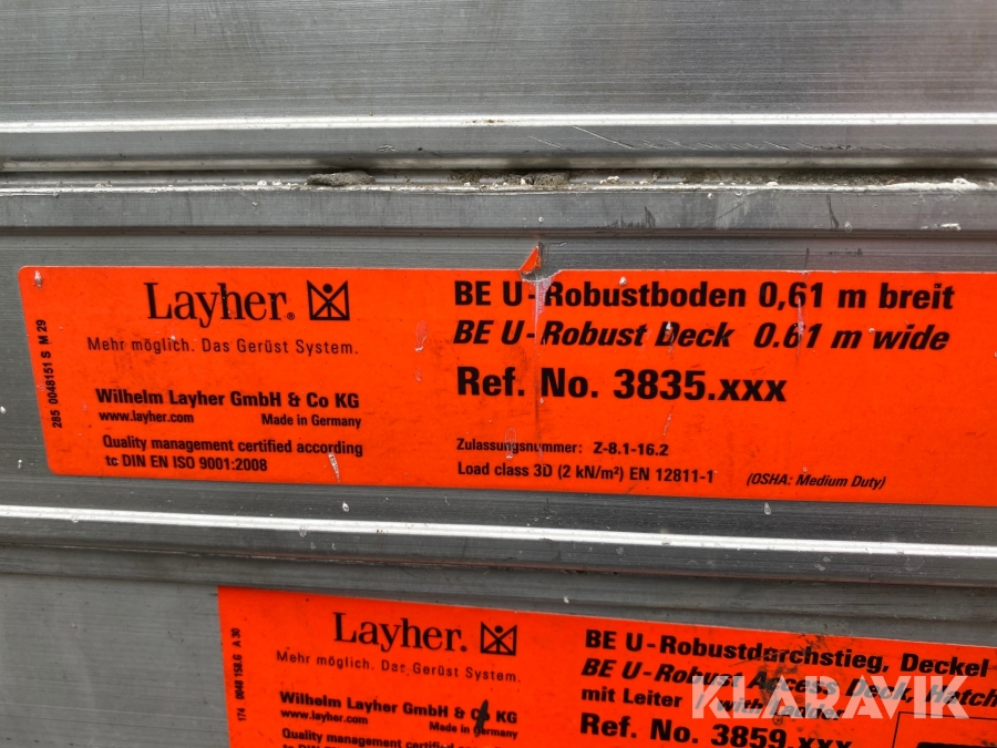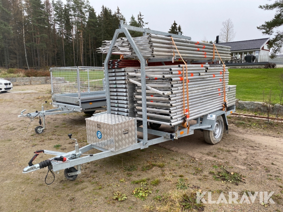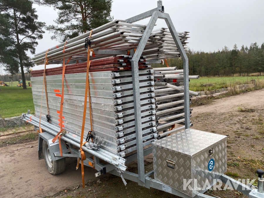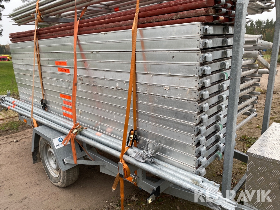 Ställningssläp Layher med material för en arbetsyta på 114 m2