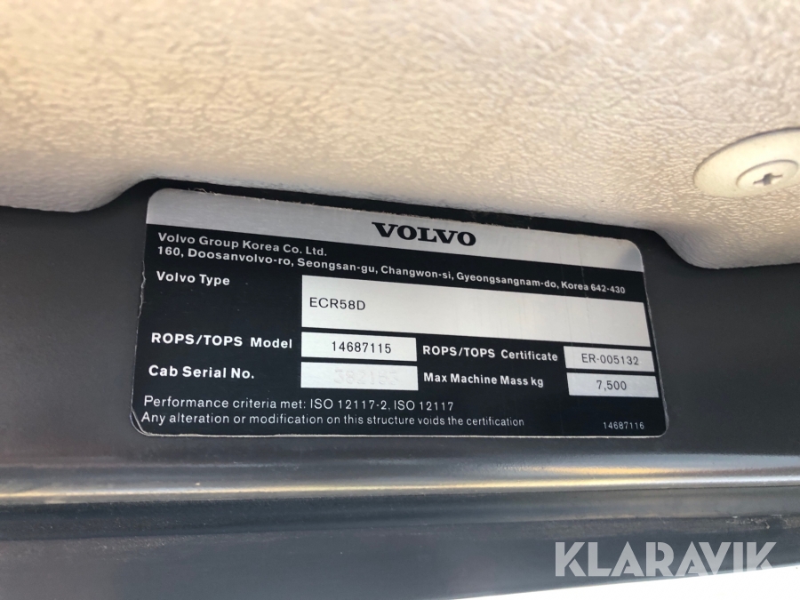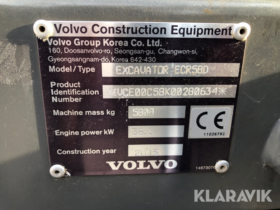 Grävmaskin Volvo ECR58D med centralsmörjning