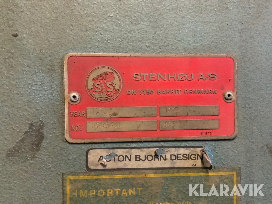 Press Stenhöj 100 ton med powerpack