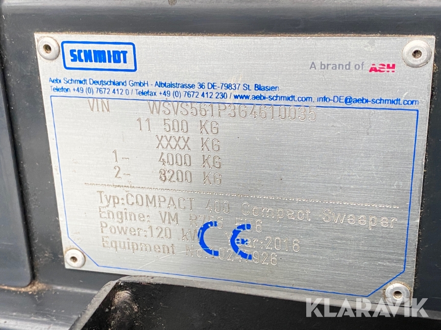 Sopmaskin Schmidt Cleango 500 / Compact 400 Euro 6
