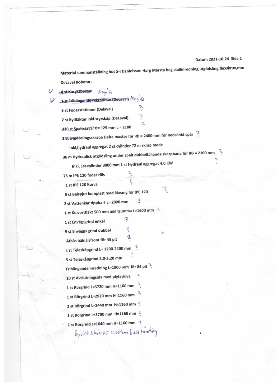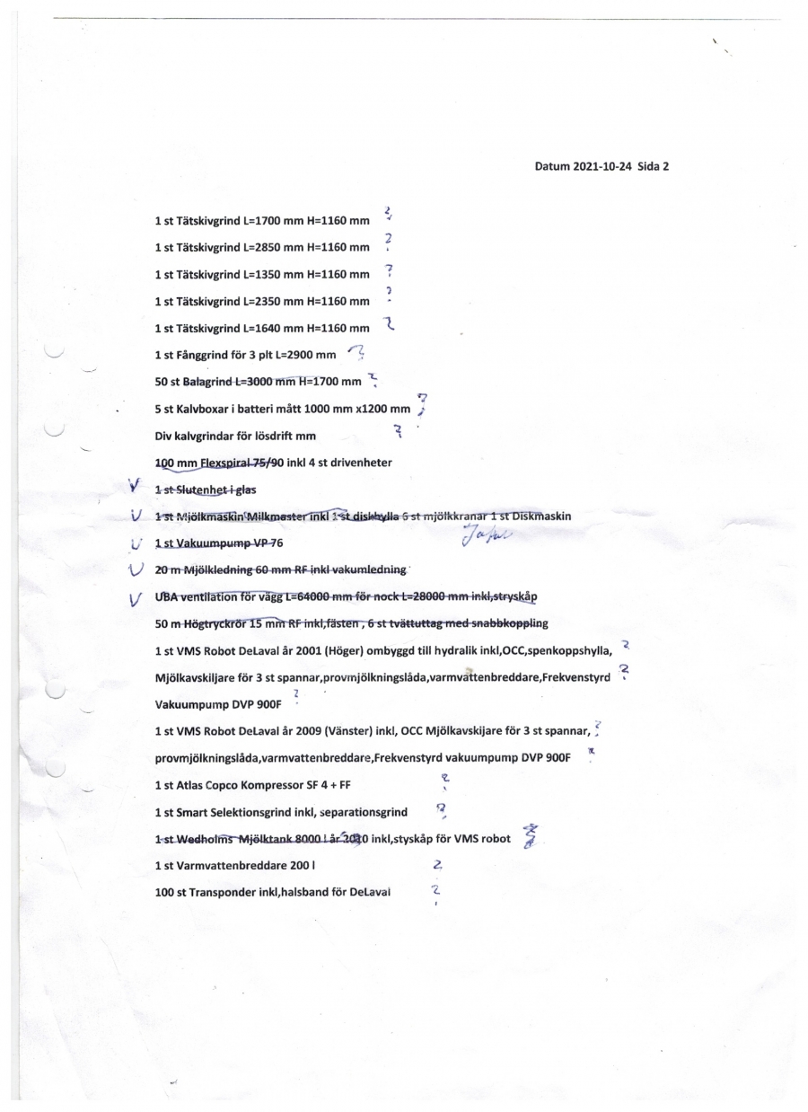 Mjölkrobot, stallutrustning och inredning