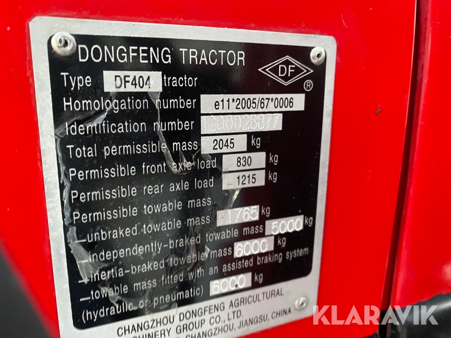 Traktor Dongfeng DF 404 med tillbehör