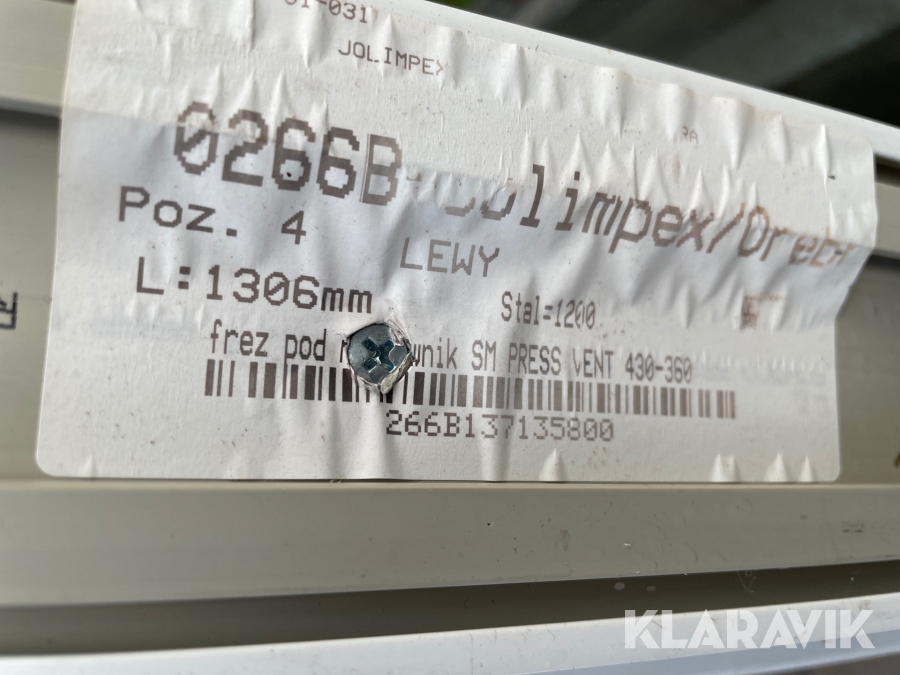Boka frakt? Det finns ingen specifik information om frakt för just det här objektet, men om du skickar oss en förfrågan via vårt fraktformulär, så undersöker vi möjligheten. Paket, EU-pall eller större maskin? Klaravik har fraktavtal med Schenker och i de fall vi kan hjälpa till med frakt gäller det objekt som ryms i paket eller inom en EU-pall (upp till 120*80 cm och 990 kg). Det går att beställa frakt inom Sverige, dock inte till utlandet. Vid frakt på större maskiner rekommenderar vi gärna transportföretag som du kan kontakta.
