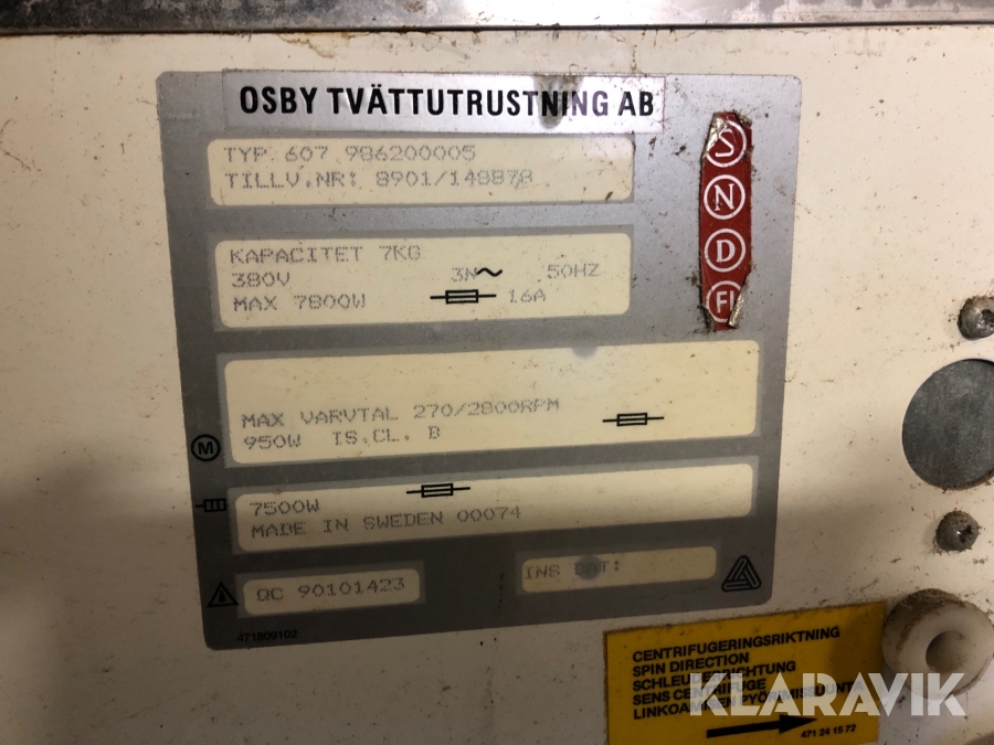 Industritvättmaskin Osby tvättutrustningar AB 607 7 kg’s