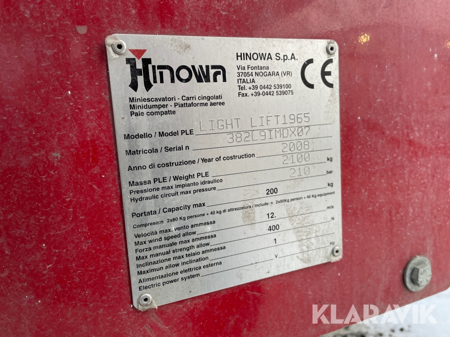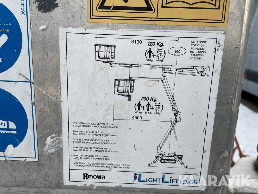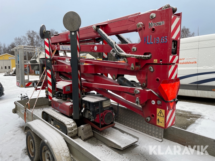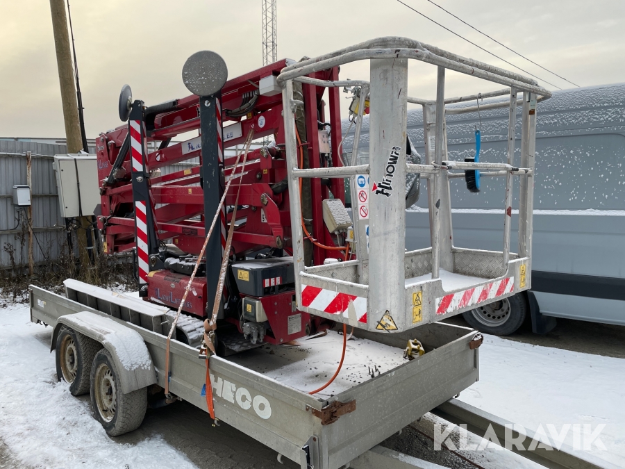 Bandgående bomlift Hinowa Light lift 19,65 och biltrailer