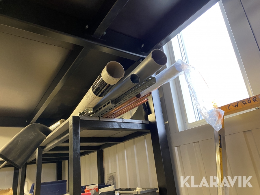 Notera! Hyllor och skåp samt lilla hyllan med dammsugare ingår EJ, samt att maskinlådor som syns på bild är tomma!