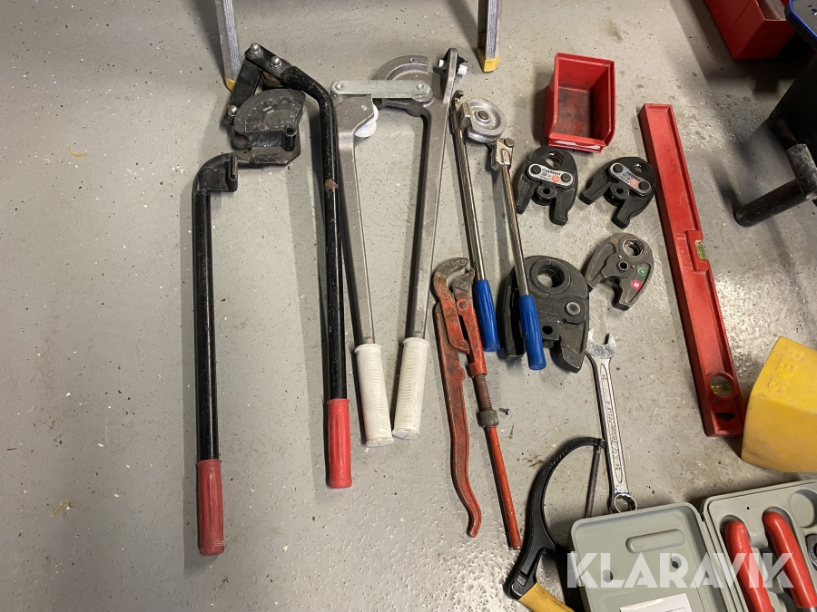 Samt div. övriga verktyg mm, och parti med vvs material, se bilder.