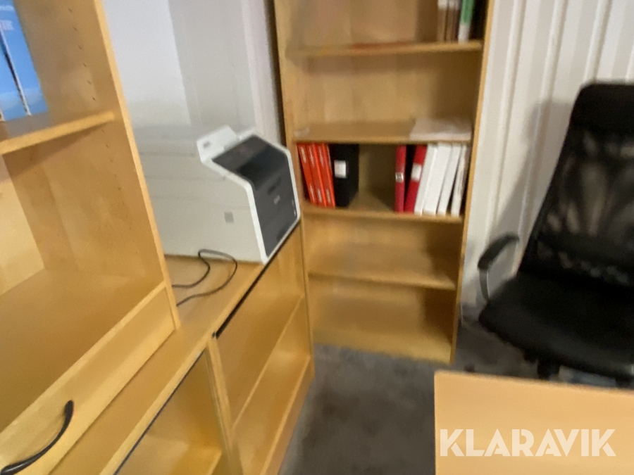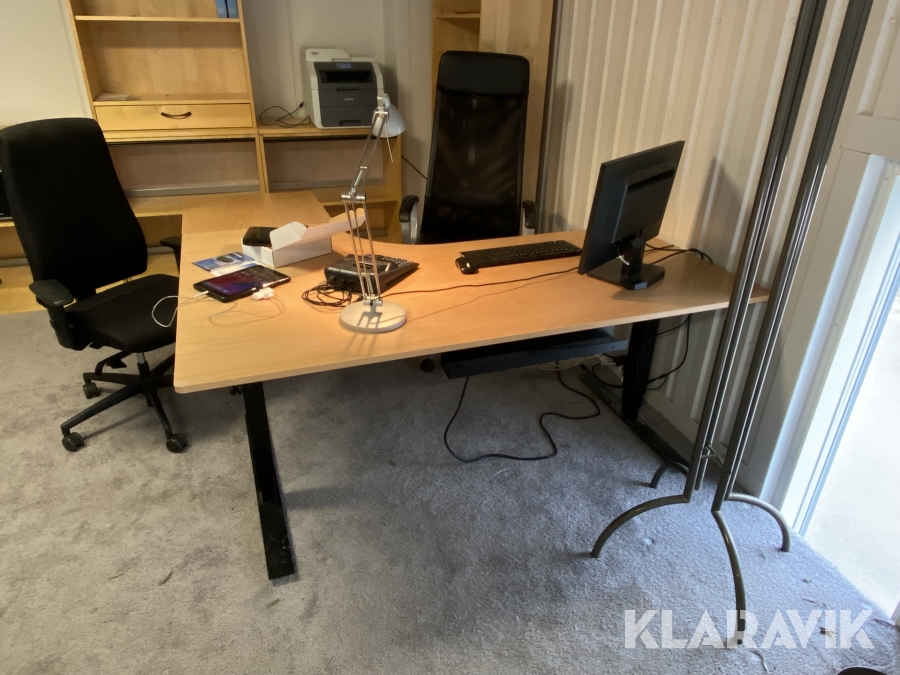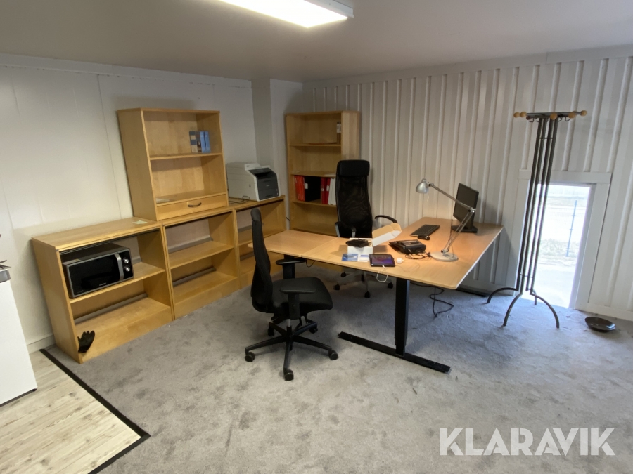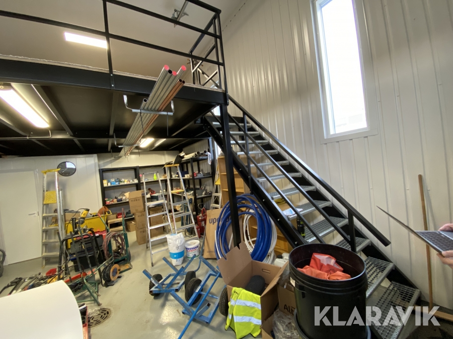 - Övervåning/entresol, kontorsutrustning (endast trappa ned),