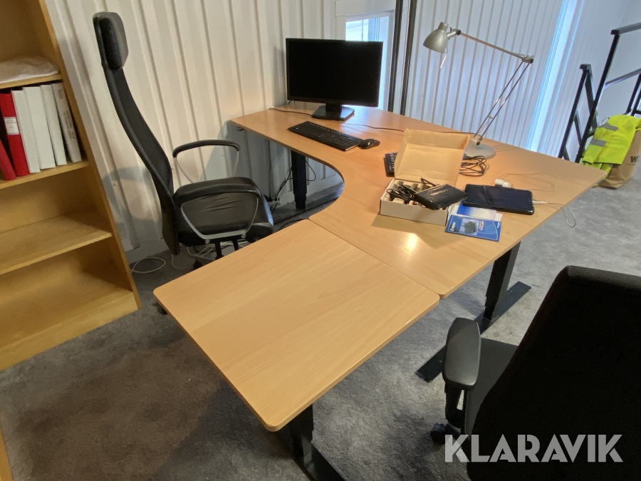 Höj/sänkbart skrivbord i vinkel, ca.180x180cm, Thule/Linak