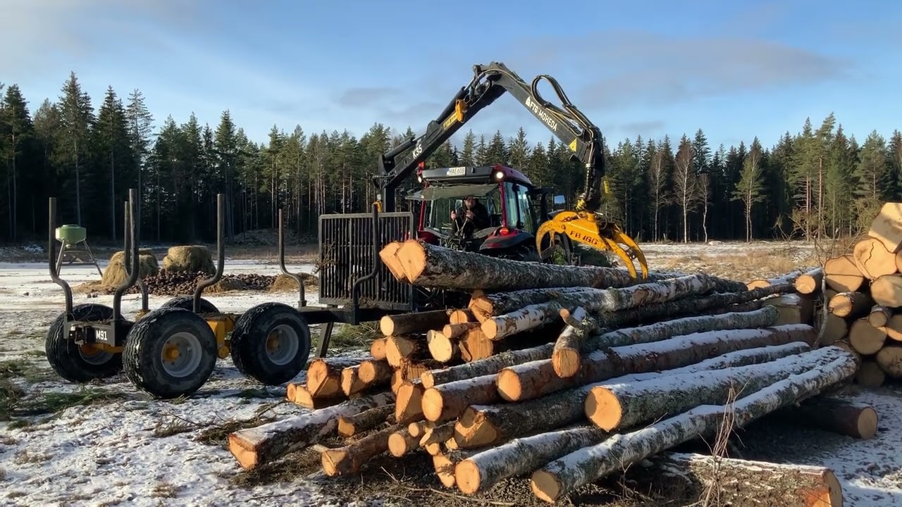 Traktor Valtra A94 SH med skogsvagn Moheda M91