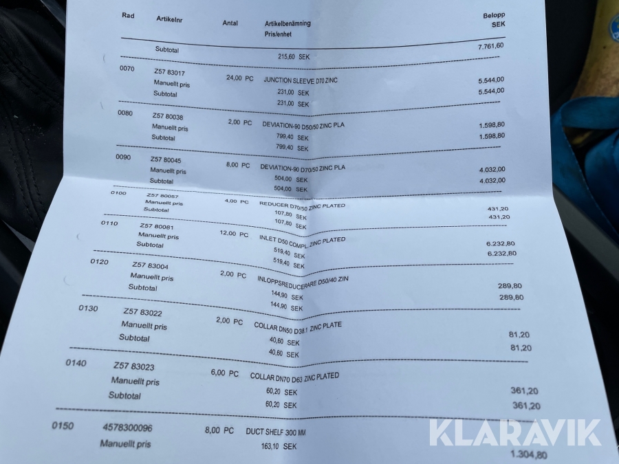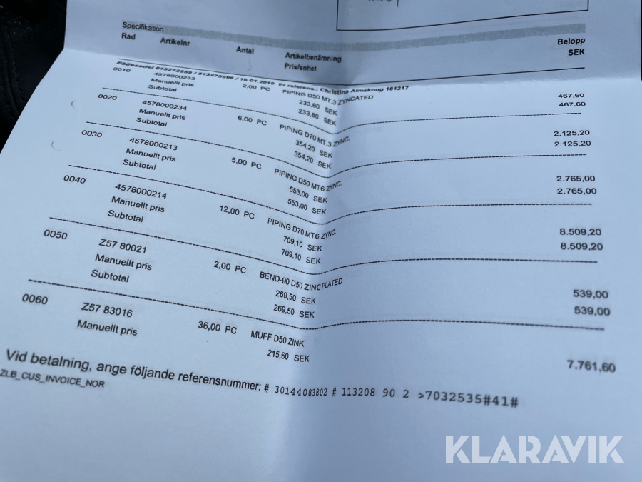 Boka frakt? Det finns ingen specifik information om frakt för just det här objektet, men om du skickar oss en förfrågan via vårt fraktformulär, så undersöker vi möjligheten. Paket, EU-pall eller större maskin? Klaravik har fraktavtal med Schenker och i de fall vi kan hjälpa till med frakt gäller det objekt som ryms i paket eller inom en EU-pall (upp till 120*80 cm och 990 kg). Det går att beställa frakt inom Sverige, dock inte till utlandet. Vid frakt på större maskiner rekommenderar vi gärna transportföretag som du kan kontakta.