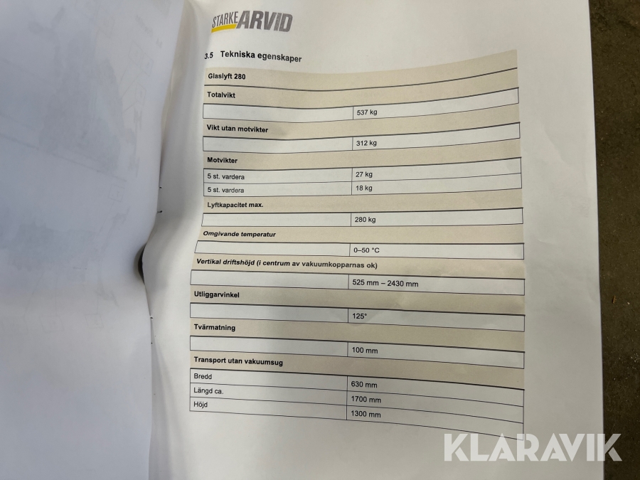 Glaslyft Starke Arvid 280