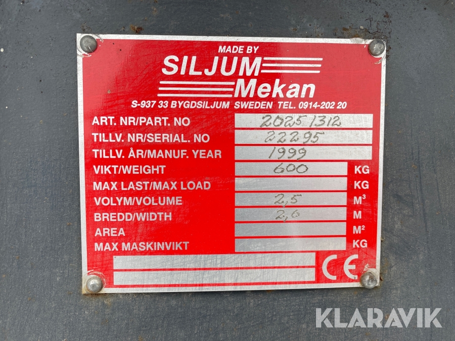 Boka frakt? Det finns ingen specifik information om frakt för just det här objektet, men om du skickar oss en förfrågan via vårt fraktformulär, så undersöker vi möjligheten. Paket, EU-pall eller större maskin? Klaravik har fraktavtal med Schenker och i de fall vi kan hjälpa till med frakt gäller det objekt som ryms i paket eller inom en EU-pall (upp till 120*80 cm och 990 kg). Det går att beställa frakt inom Sverige, dock inte till utlandet. Vid frakt på större maskiner rekommenderar vi gärna transportföretag som du kan kontakta.
