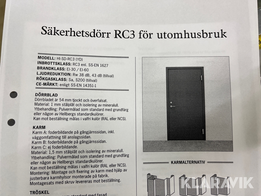 Säkerhetsdörr Hellbergs HI-SD-RC3