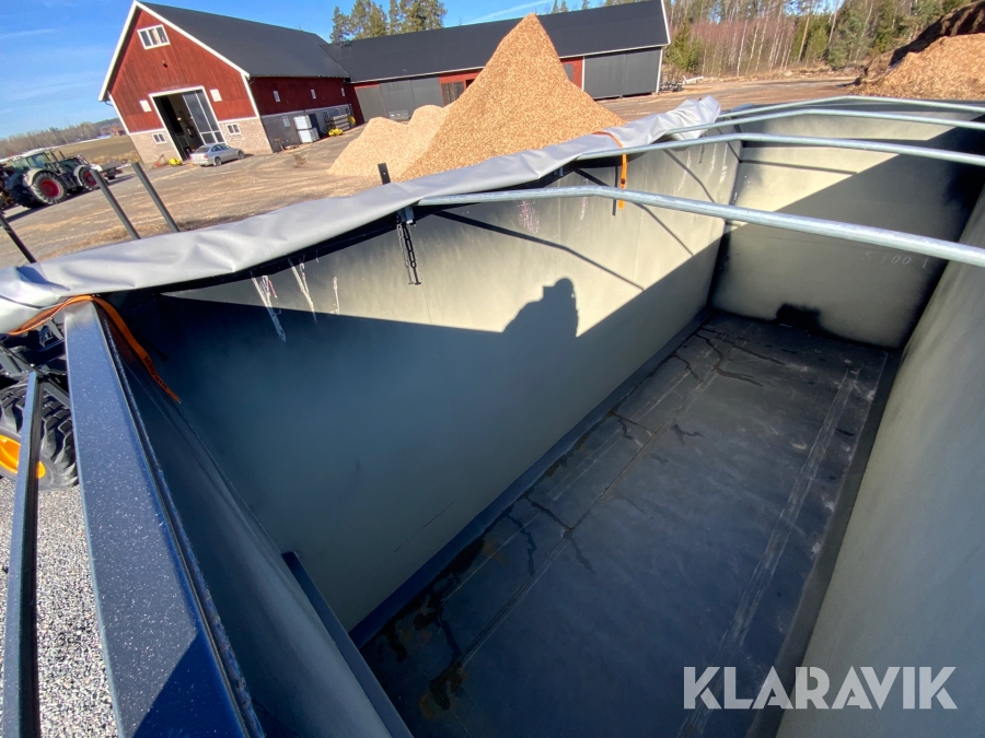 Container RQF 40m3 med rulltäckning för flis på lastväxlarram