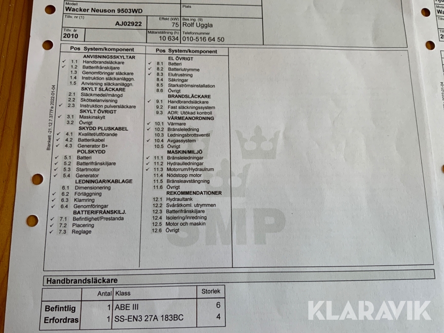• Serie/chassinummer framgår