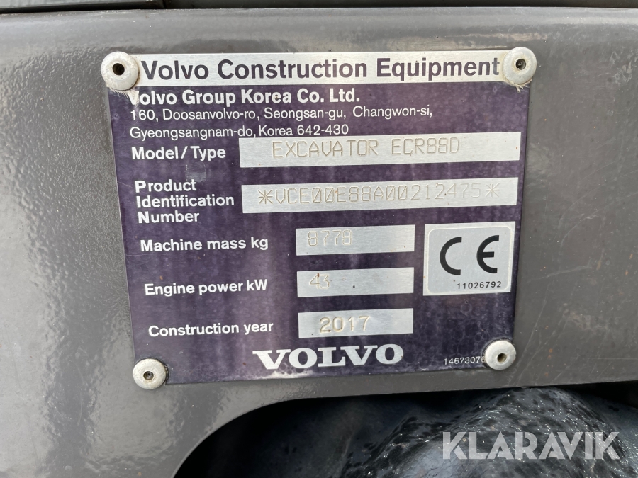 Grävmaskin Volvo ECR 88 D med redskap