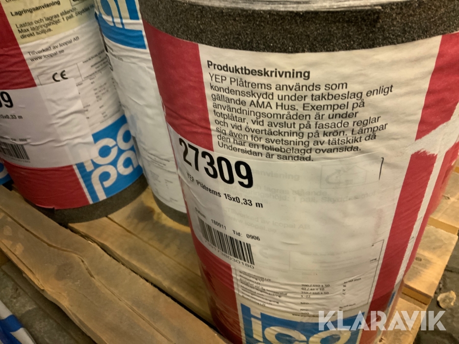 Plåtrems Icopal YEP 2500 15x0,33 meter. ca 80 rullar