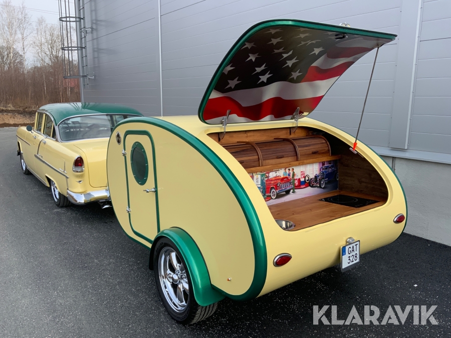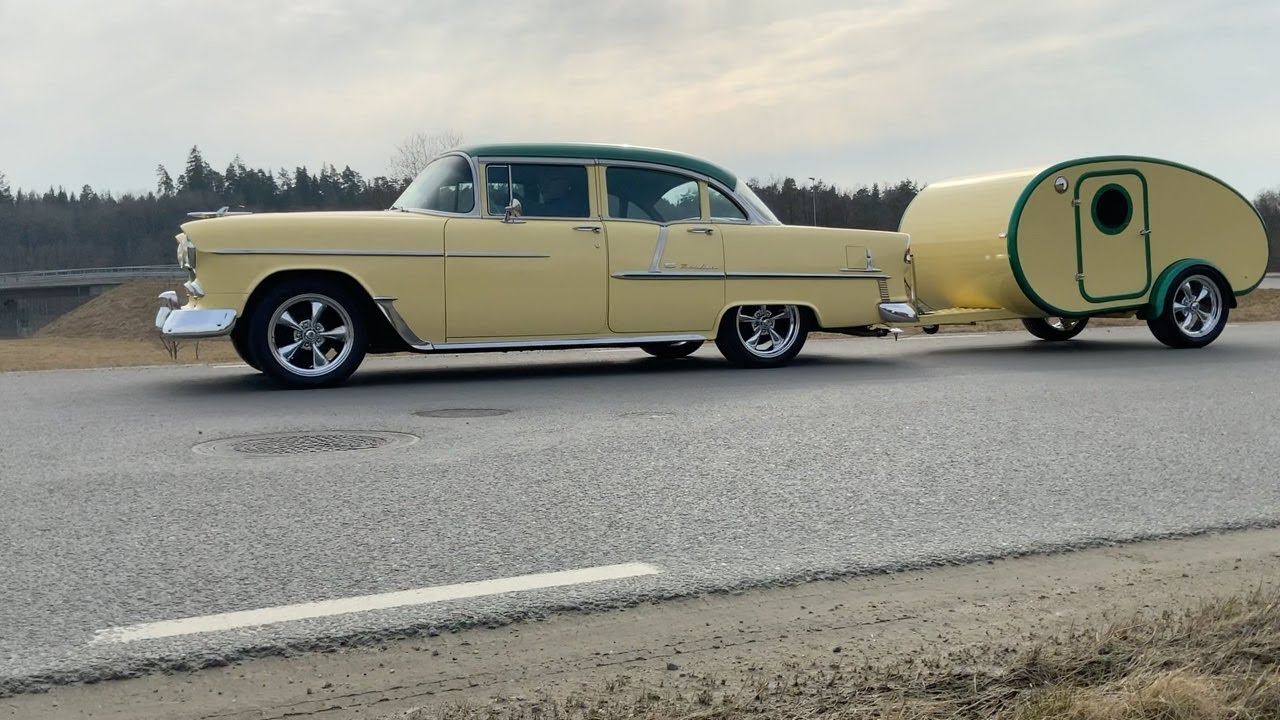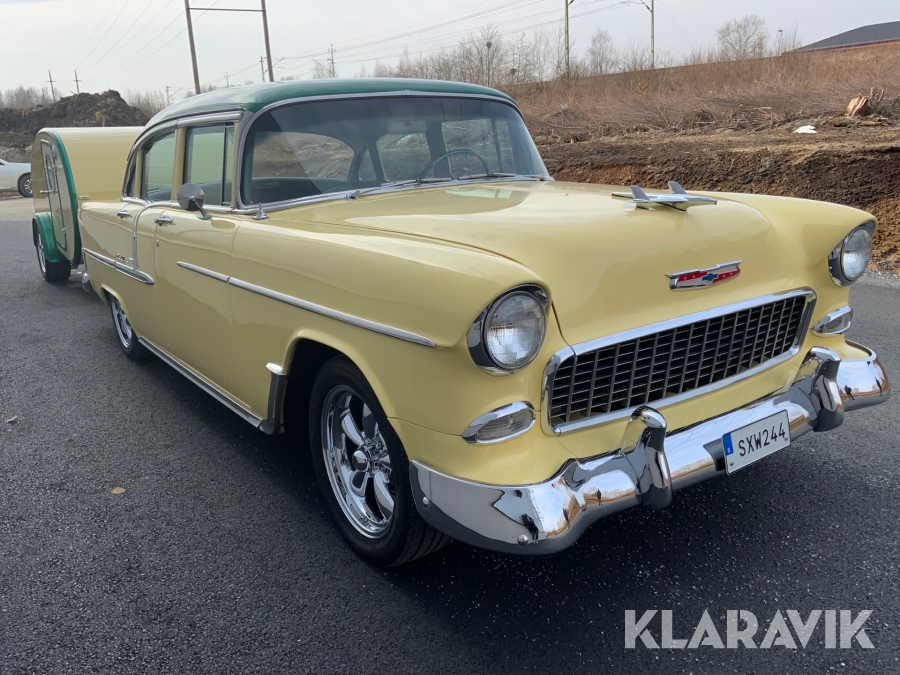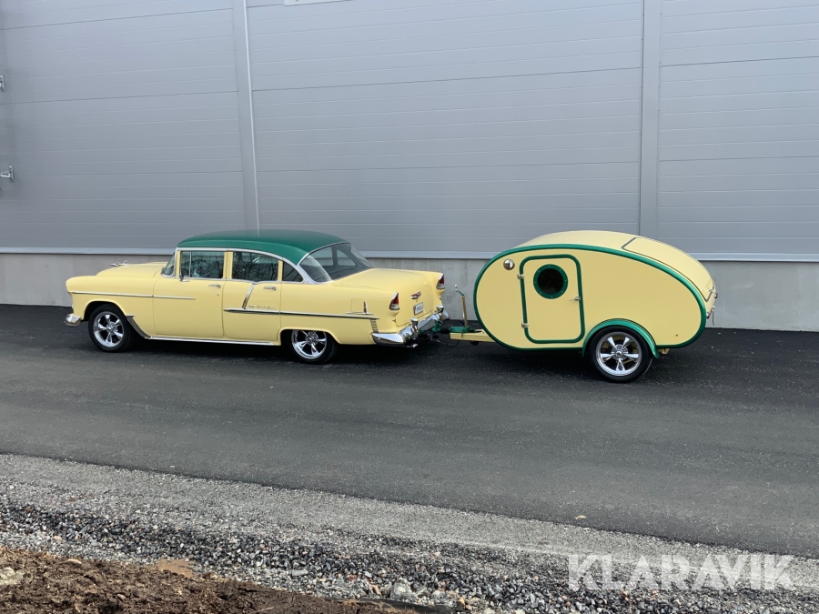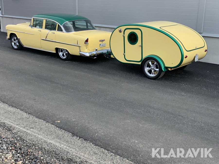 Veteranbil Chevrolet Bel Air -55 med husvagn